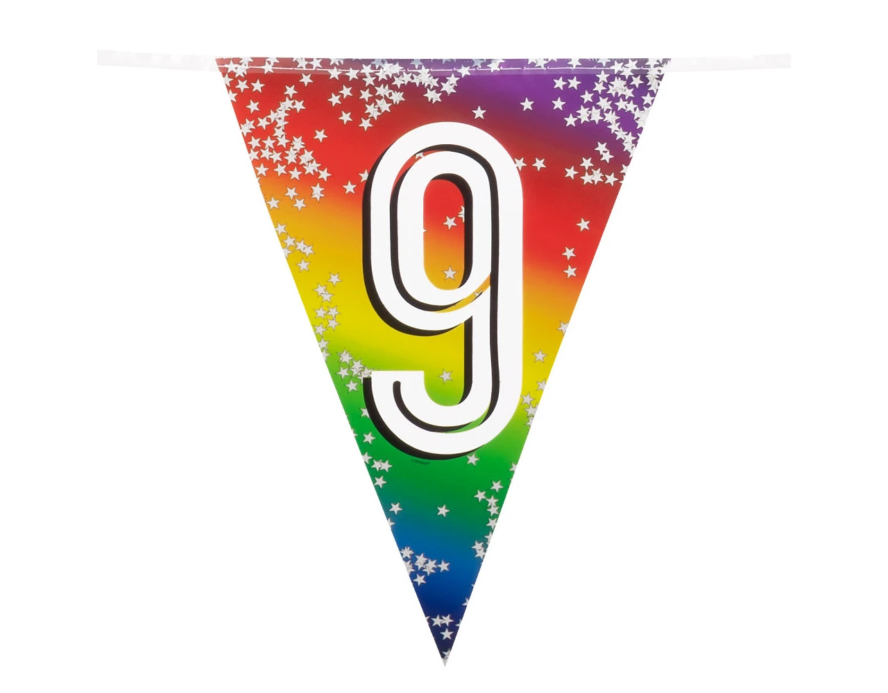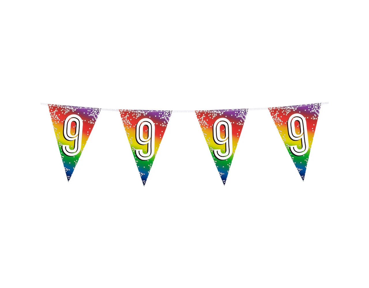 Inhoud: 15 vlaggen (verdeeld over 6 meter en 2 meter koord aan beide zijden)