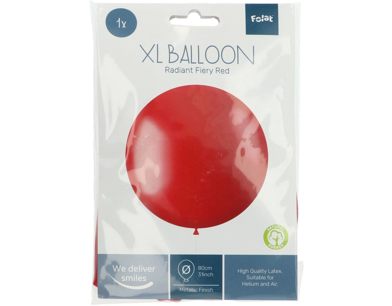 Ballon XL Radiant Fiery Red Metallic – 78 cm. Inhoud: 1 latex ballon. Kleur: Rood. Kleureffect: Metallic. Bijvoorbeeld te gebruiken tijdens de volgende feestgelegenheid/feestgelegenheden: Verjaardag, Kinderfeestje en Themafeest. De ballon is 31 inch/78 cm. Het artikel is gemaakt van latex.
