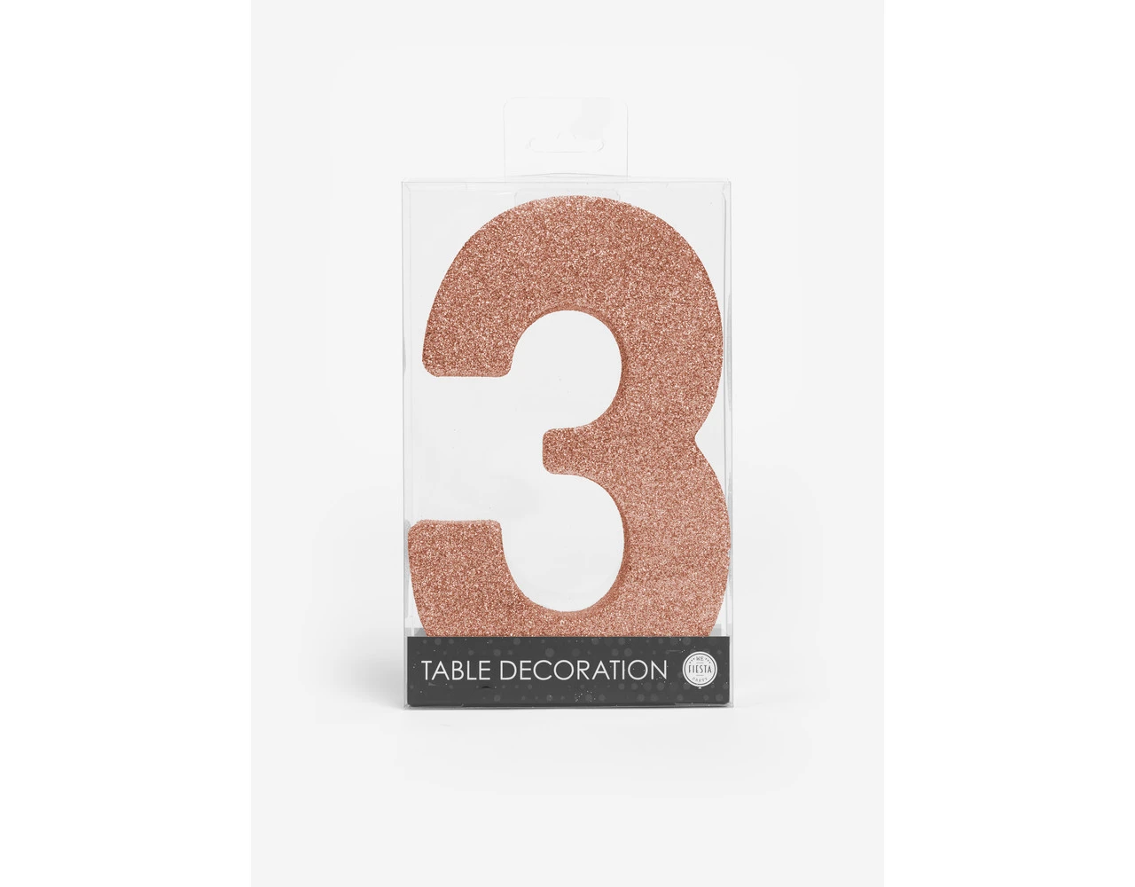 Verpakkingsinhoud: Rose Goud Tafeldecoratie Cijfer 3 Glitter 20,5cm