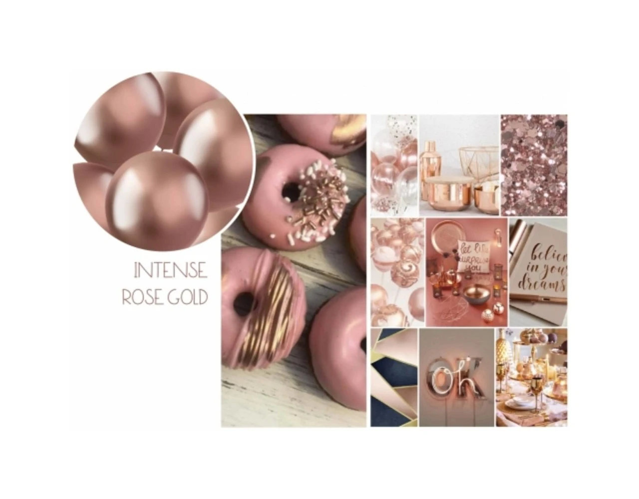 Ballonnen Intense Rosegold 48cm – 5 stuks. Inhoud: 5 latex ballonnen. Kleur: Rosegoud. Bijvoorbeeld te gebruiken tijdens de volgende feestgelegenheid/feestgelegenheden: Verjaardag, Kinderfeestje en Themafeest. Elke ballon is 19 inch/48 cm. Het artikel is gemaakt van latex.