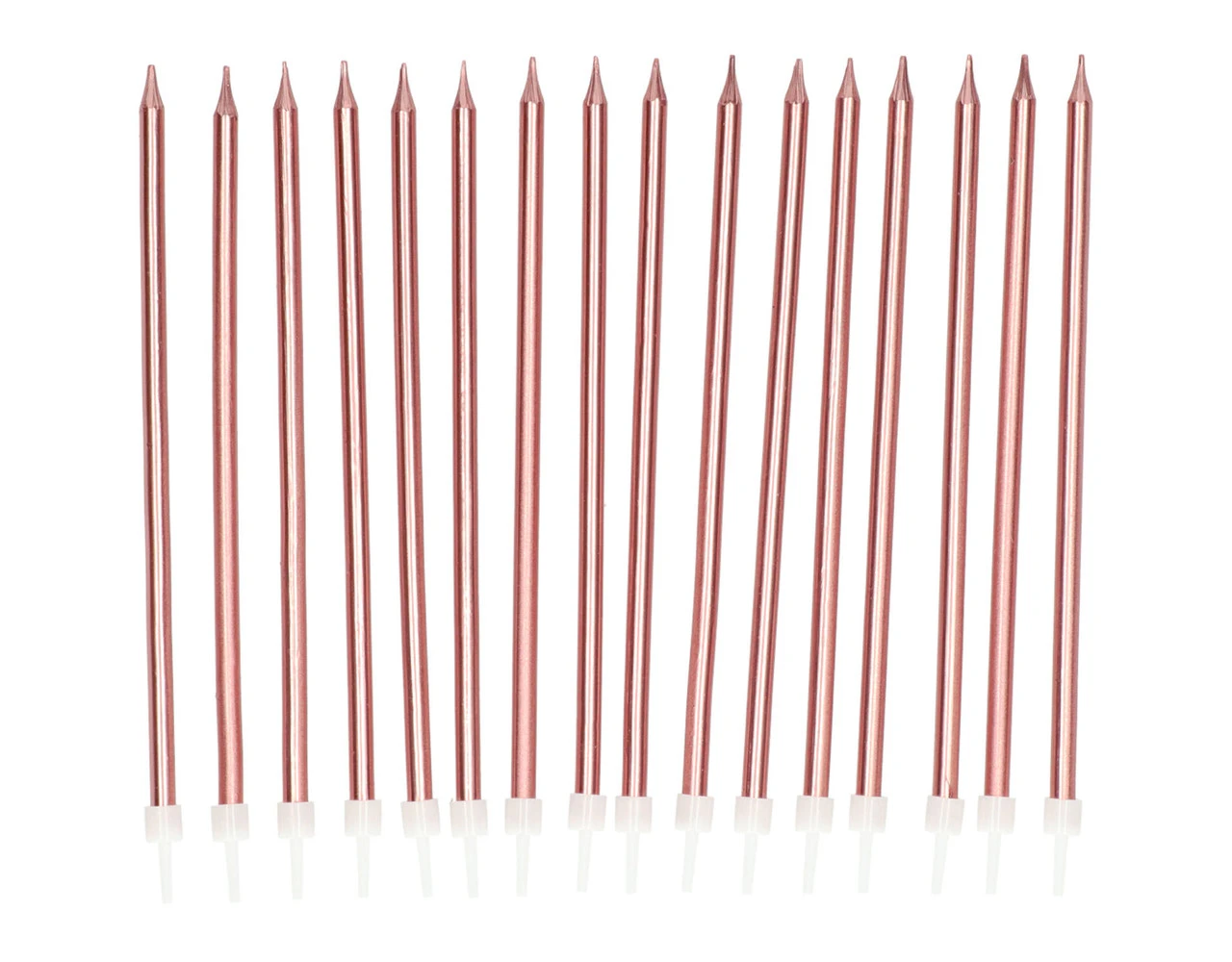 Kaarsenset Rosegoud Metallic 15cm – 16 stuks. Inhoud: 16 kaarsen van 15cm. Kleur: Rosegoud. Bijvoorbeeld te gebruiken tijdens de volgende feestgelegenheid/feestgelegenheden: Verjaardag, Kinderfeestje en Jubileum. Afmetingen van dit artikel: 15 cm. Het artikel is gemaakt van wax.