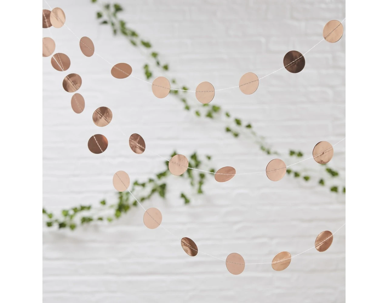 Eenvoudig en verbluffend, deze ronde roségouden feestslinger is de perfecte hangende decoratie! Gebruik bij speciale feesten zoals bruiloften, babyborrels en feesten of hang gewoon in huis.
