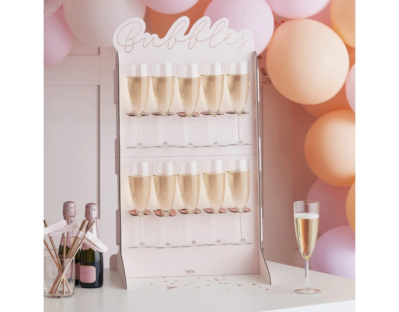 Kijk hoe de gezichten van je gasten oplichten als ze onze prosecco-wandhouder zien. Maak je eigen prosecco-hoek waar je gasten blij van worden. De perfecte finishing touch voor uw vrijgezellenfeest.