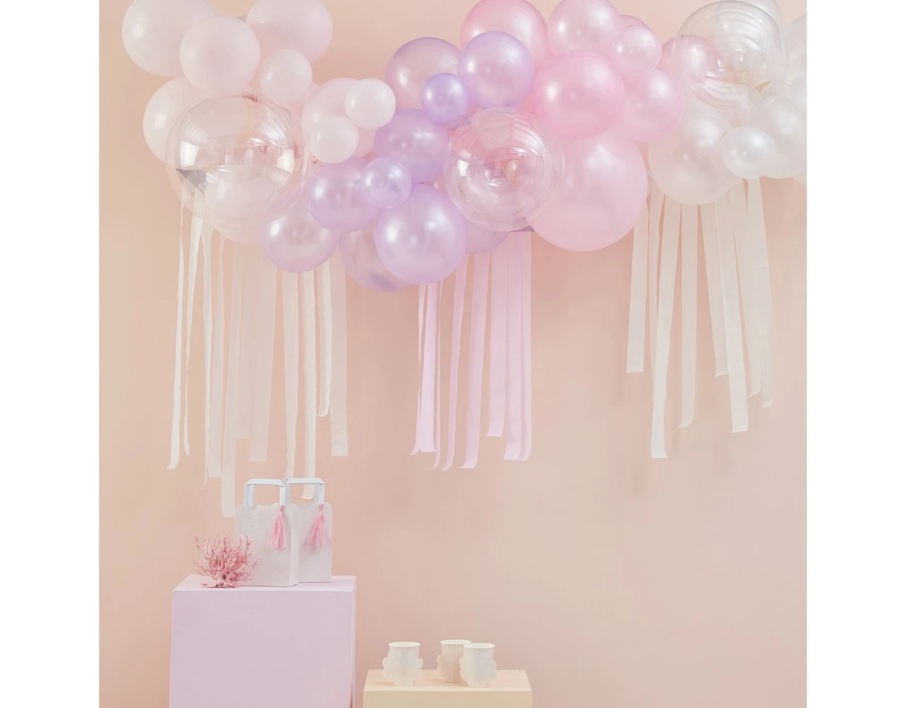 Creëer een spannende onderwaterwereld met deze prachtige Balloon Arch! Het zal een blikvanger zijn op uw feest. Deze indrukwekkende ballonboog zal uw gasten gegarandeerd aan het praten krijgen en zal een geweldige aanvulling zijn bij het decoreren van uw locatie. De perfecte ballonachtergrond voor al je feestfoto’s! Combineer met feestdecoraties en servies uit ons nieuwe ‘Mermaid Magic’-assortiment vol iriserende sprankeling.