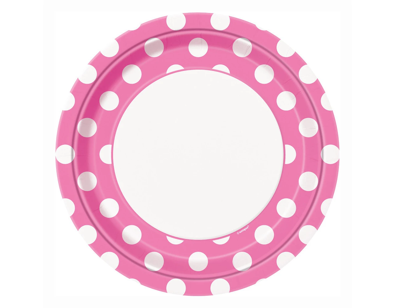 Verpakkingsinhoud: Roze Borden Stippen 23cm 8st