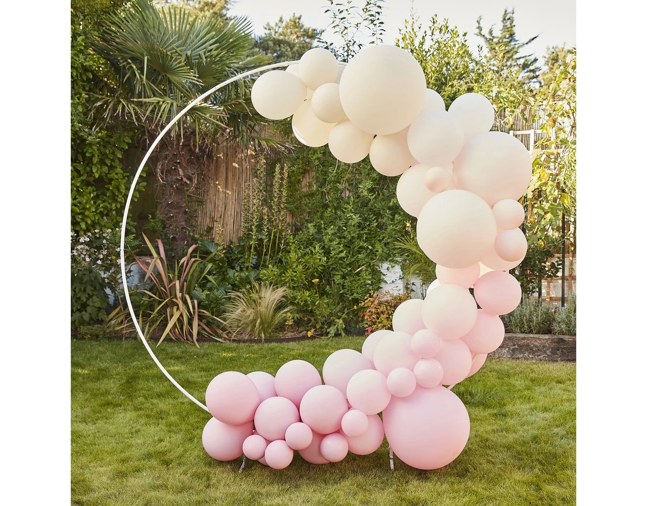 Creëer een prachtig display op uw feest met deze ongelooflijke Nude en Pink Balloon Arch Kit. Met een prachtig ombre-effect is deze ballonnenslinger perfect voor elk roze of neutraal themafeest.