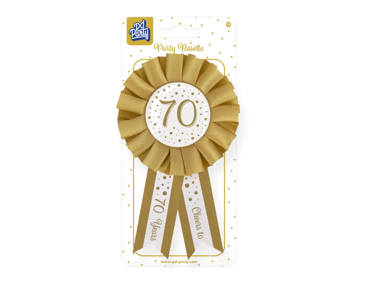 Deze party roset is erg leuk om te dragen bij een verjaardag of andere leuke gelegenheid. Door het gold/white design valt hij extra goed op!