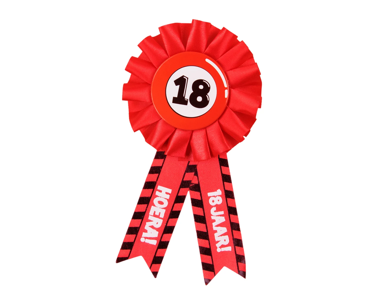 Verpakkingsinhoud: Rozet Hoera 18 Jaar Hoera