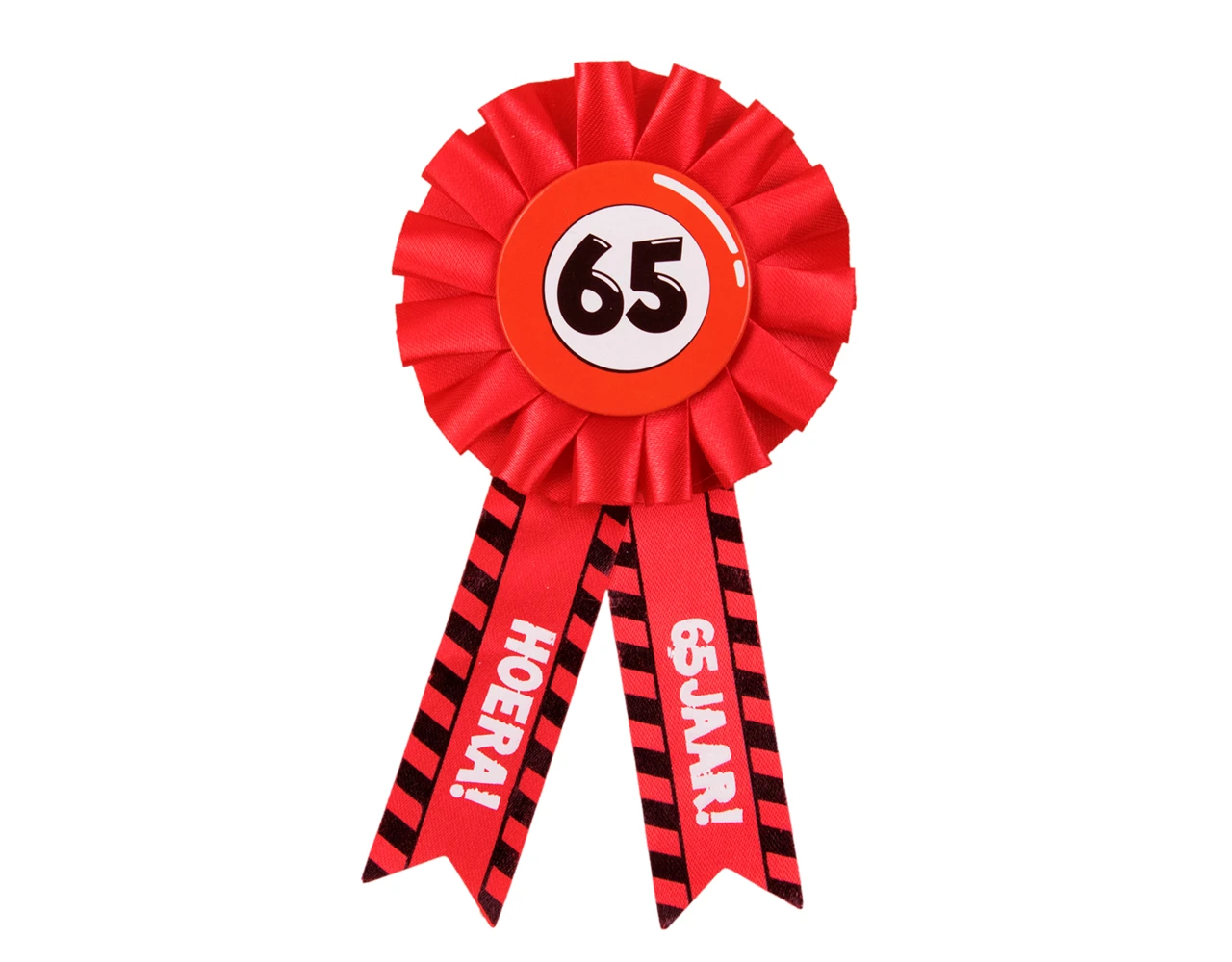Verpakkingsinhoud: Rozet Hoera 65 Jaar Hoera