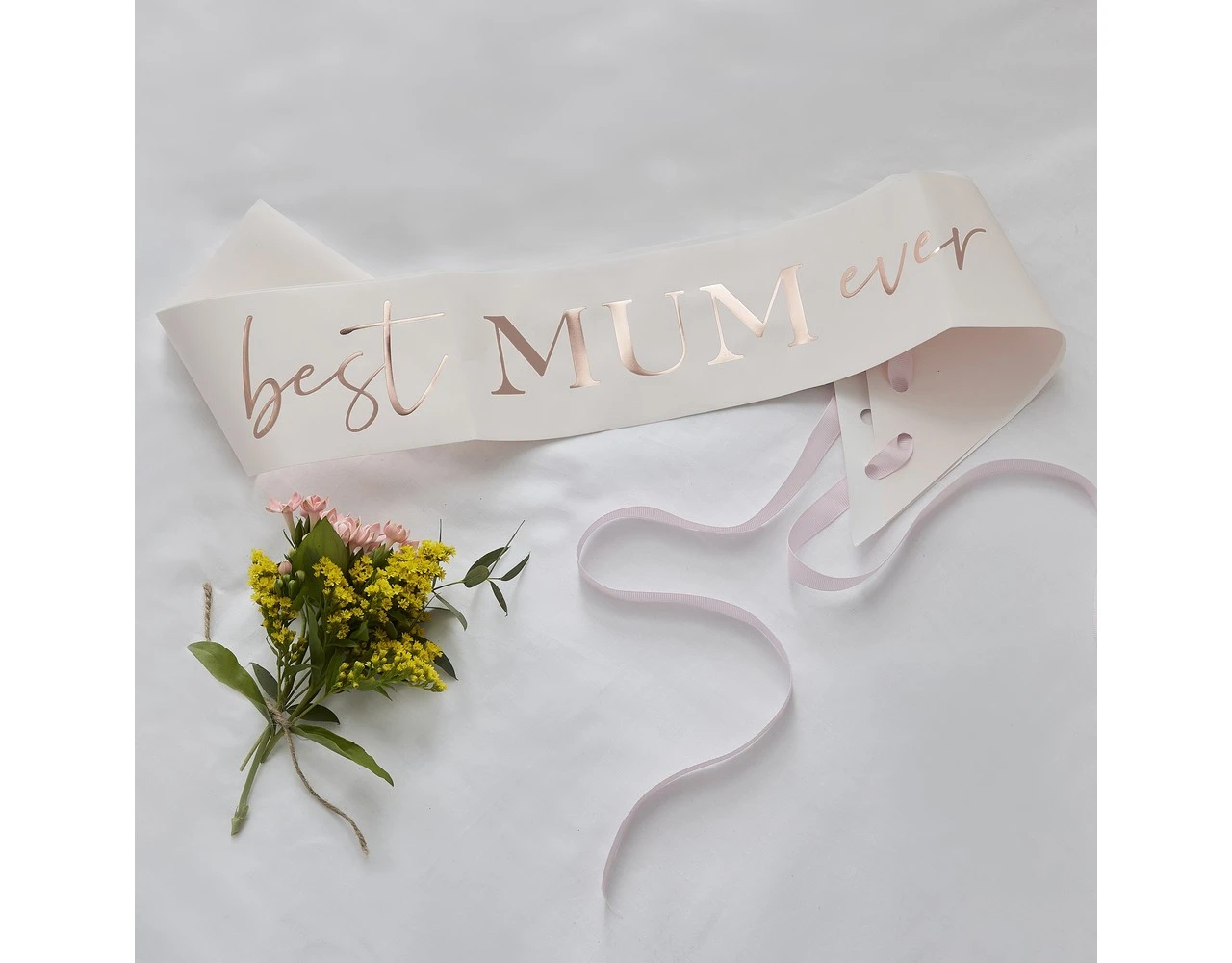 Deze mooie sjerp heeft een prachtig roségouden script in folieschrift met de tekst ‘Best Mum Ever’. Een doordachte finishing touch voor het creëren van speciale herinneringen en een aandenken dat jaar na jaar gedragen kan worden. Neem eens een kijkje in ons ‘Moederdag’-assortiment voor bijpassende roségouden decoraties om het thema voort te zetten.
