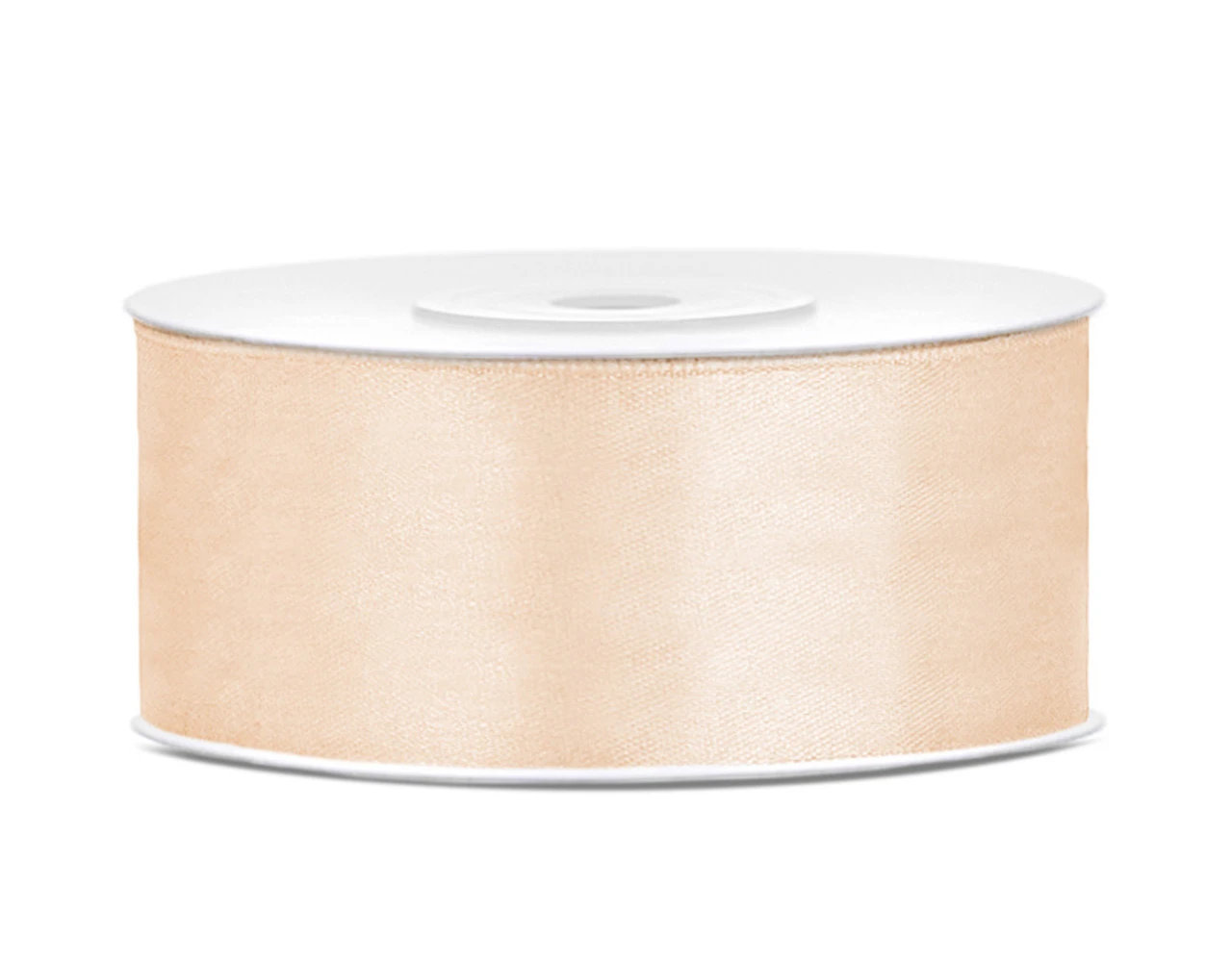 Inhoud: Satijn lint, room, breedte 25 mm, lengte 25 m. (1 st. / 25 lm)