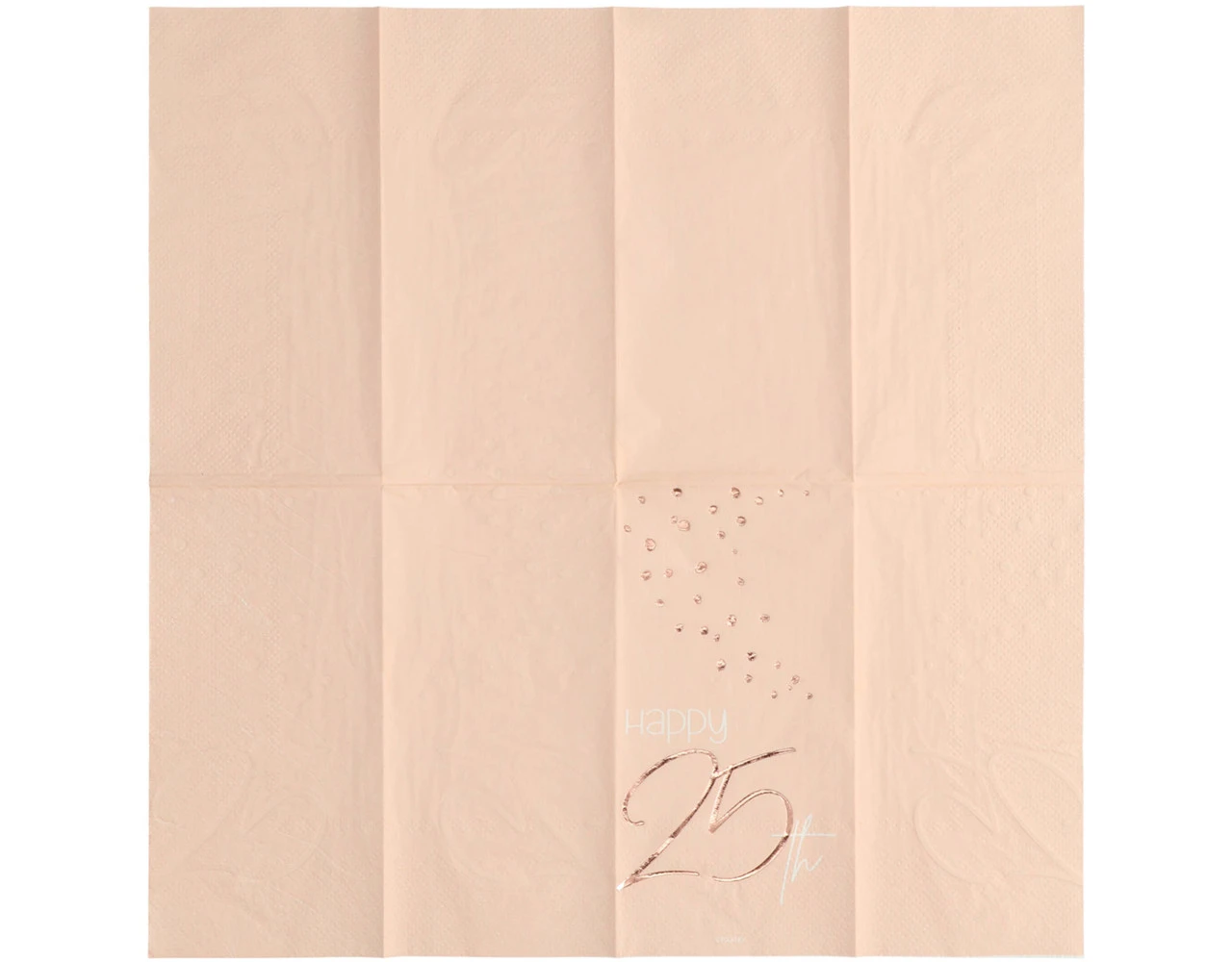 Servetten Elegant Lush Blush 25 Jaar 33x33cm – 10 stuks. Inhoud: 10 servetten van 33x33cm. Kleur: Roze. Bijvoorbeeld te gebruiken tijdens de volgende feestgelegenheid/feestgelegenheden: Verjaardag, Jubileum. Een servet is 33x33cm groot. Het artikel is gemaakt van papier. De hangtags van de servetten worden er apart bijgeleverd.