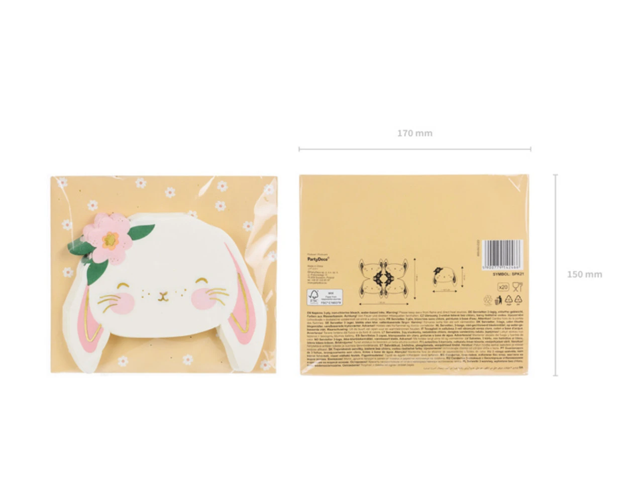 Papieren servetten Rabbit, mix van kleuren, afmeting na uitvouwen ca. 29 x 24 cm, afmeting na in elkaar zetten ca. 14,5 x 12 cm.