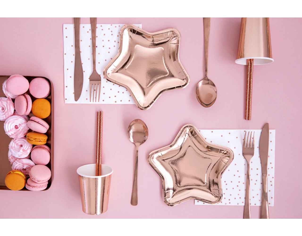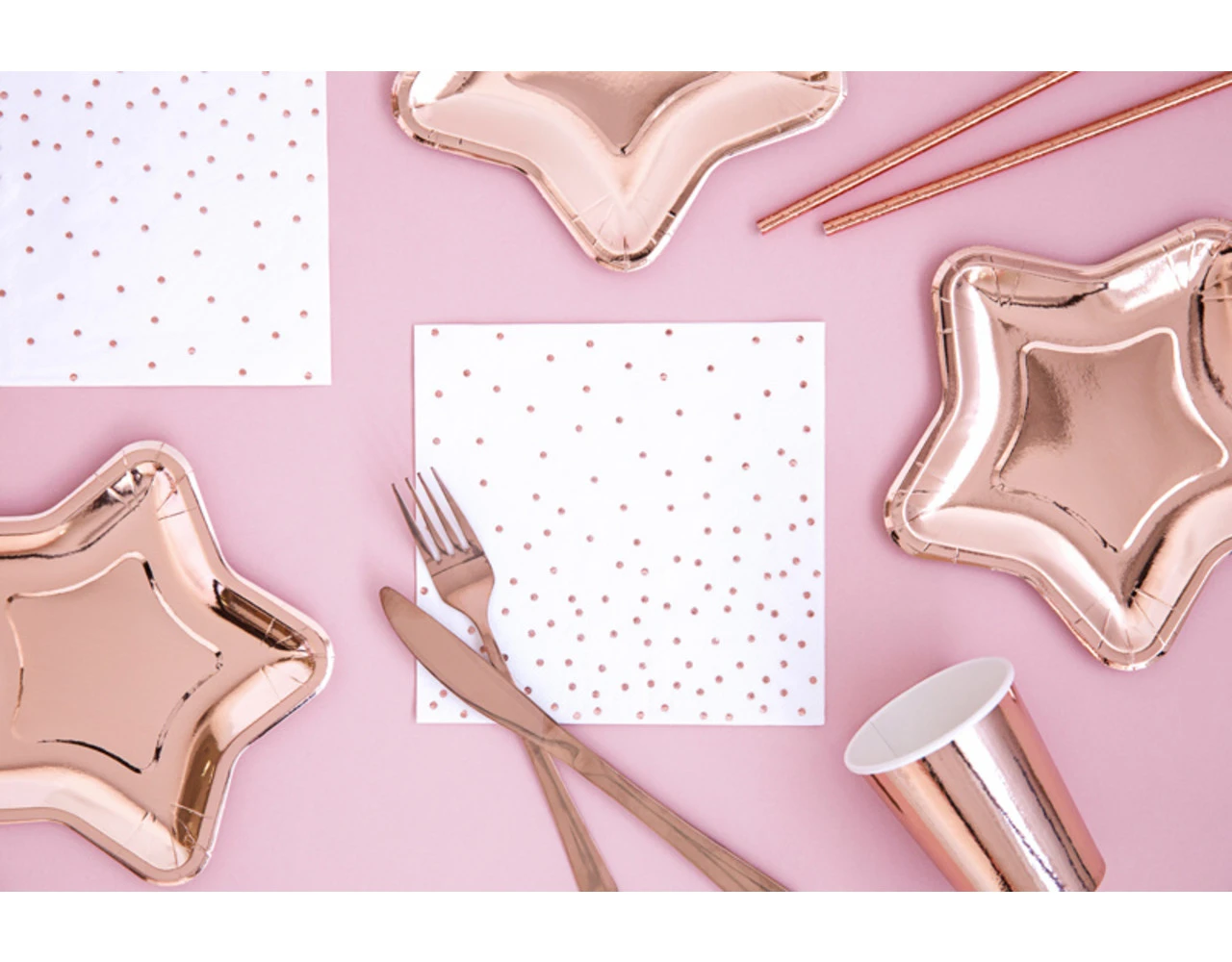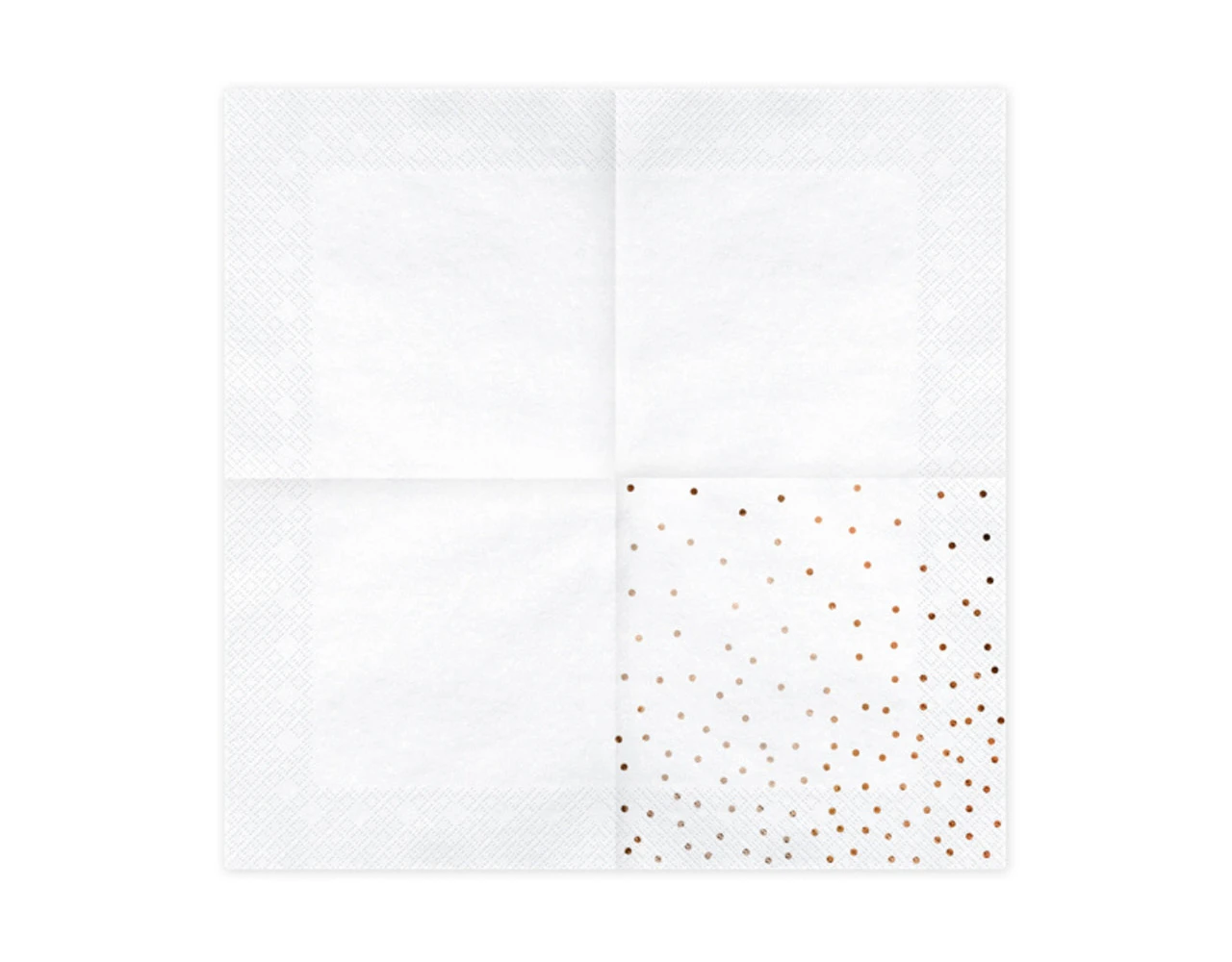 Papieren servetten in kleur met patroon van stippen in rosŽgoudkleur, afmeting na uitvouwen ca. 33 x 33 cm, afmeting na vouwen ca. 16,5 x 16,5 cm.