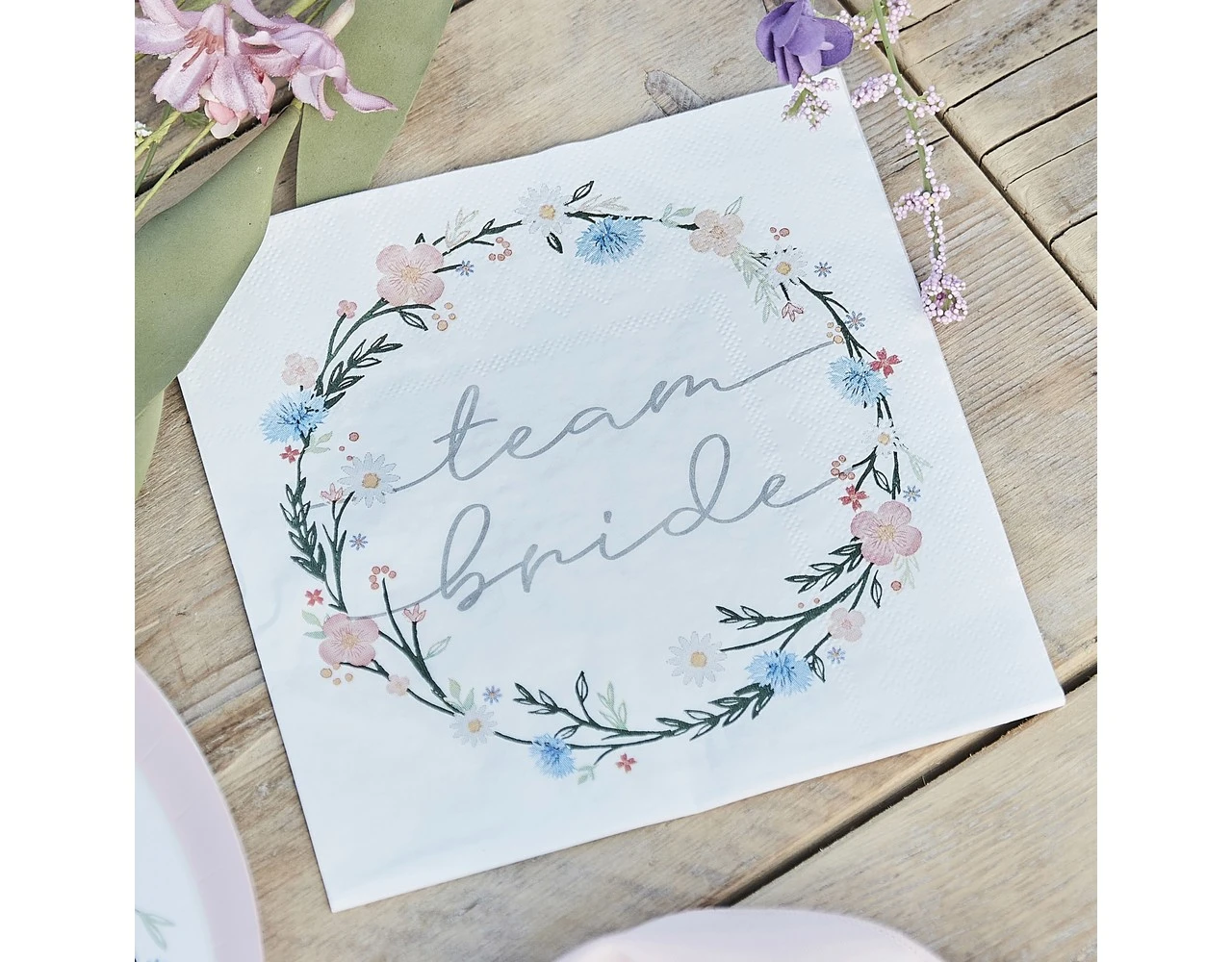 Deze prachtige Team Bride-servetten met boho-bloemen zijn perfect voor heerlijke hapjes. Een perfecte aanvulling op je vrijgezellenfeest servies.