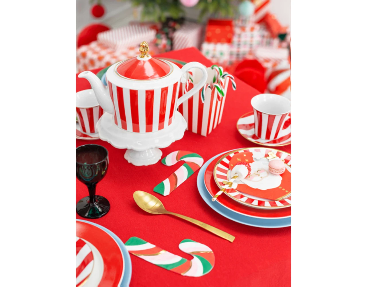 Papieren servetten Candy cane, mix van kleuren, afmeting na uitvouwen ca. 16 x 31 cm, afmeting na in elkaar zetten ca. 8 x 15,5 cm.