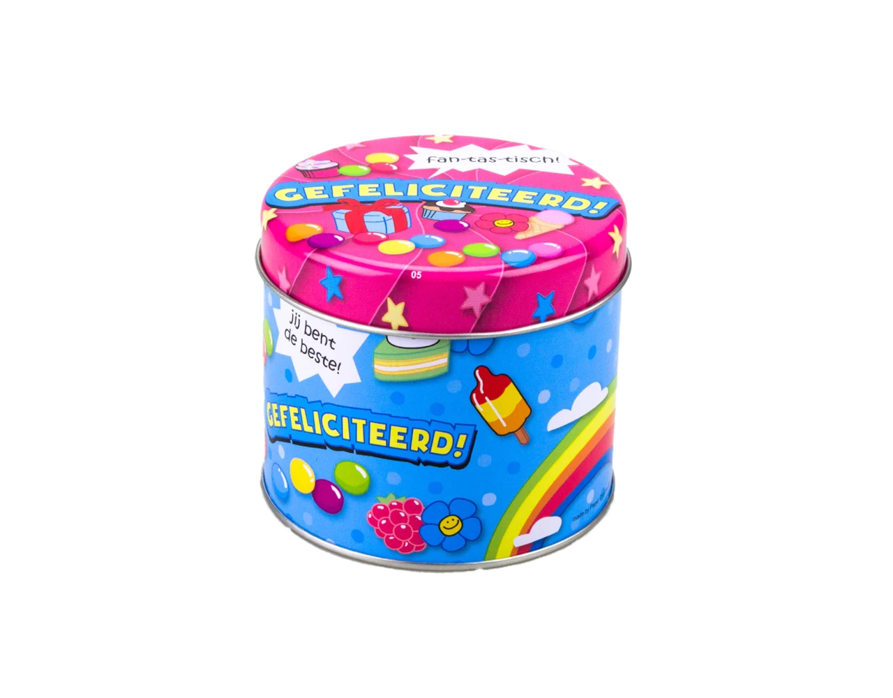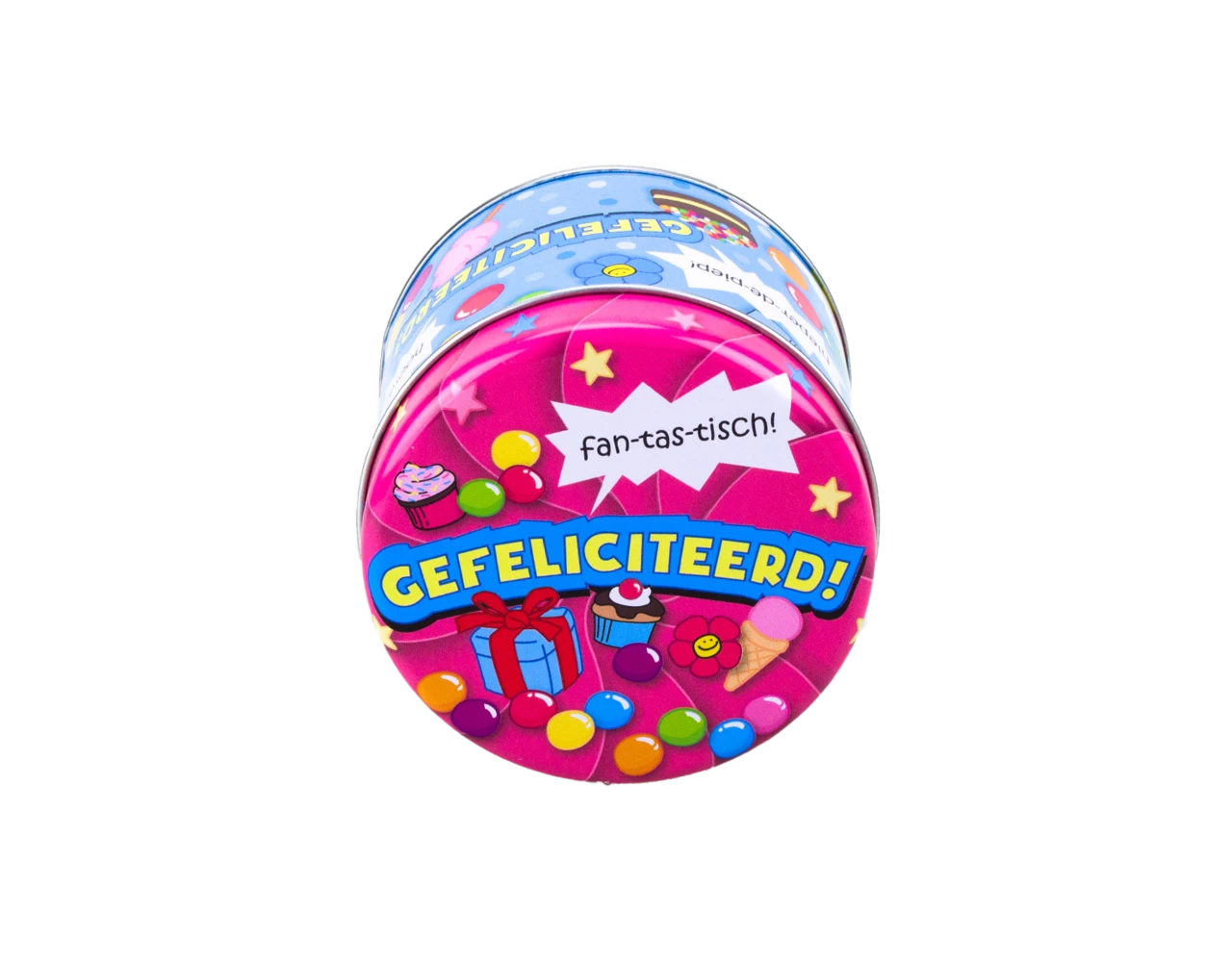 Verpakkingsinhoud: Snoepblik Gefeliciteerd 9cm