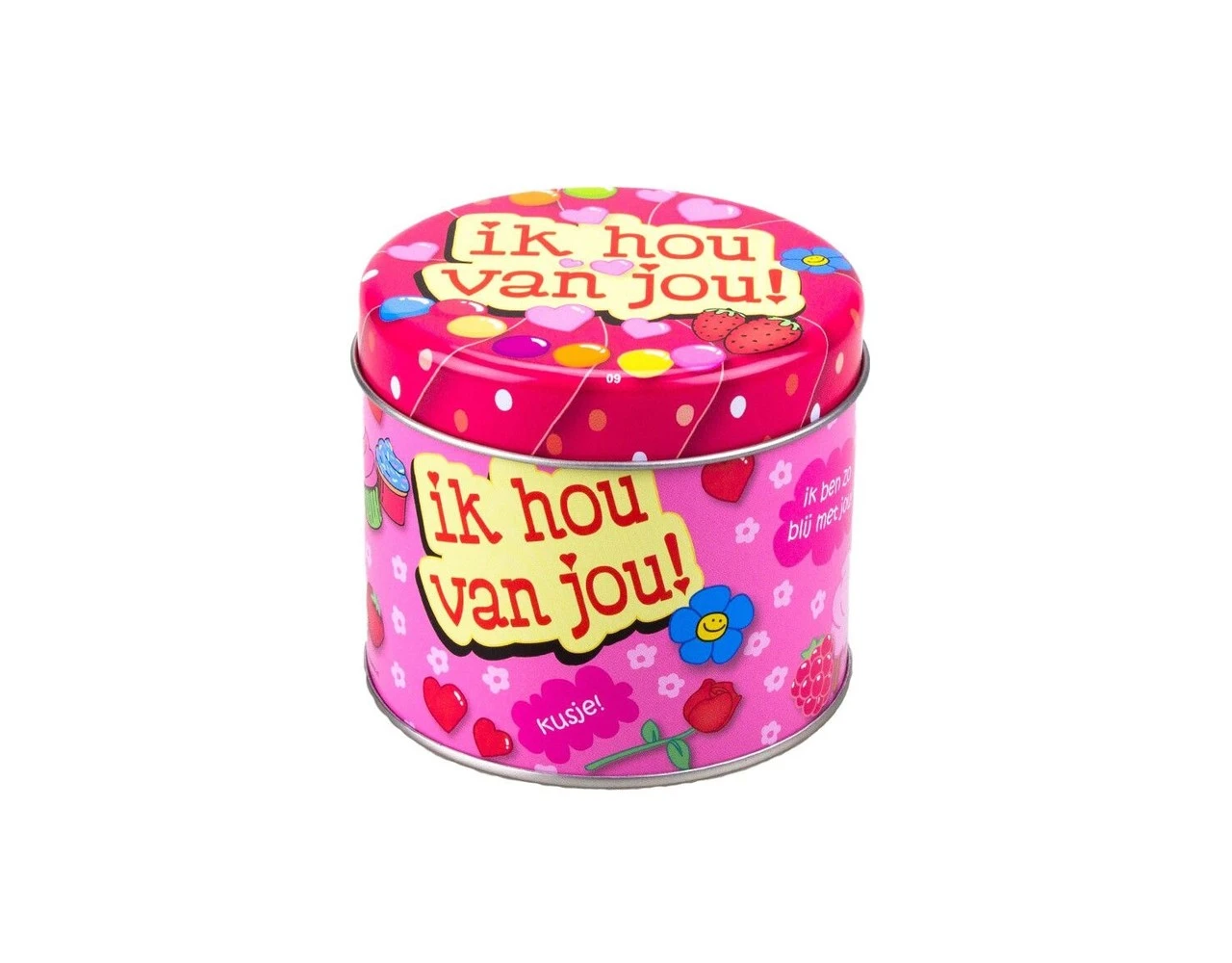 Verpakkingsinhoud: Snoepblik Ik Hou Van Jou 9cm