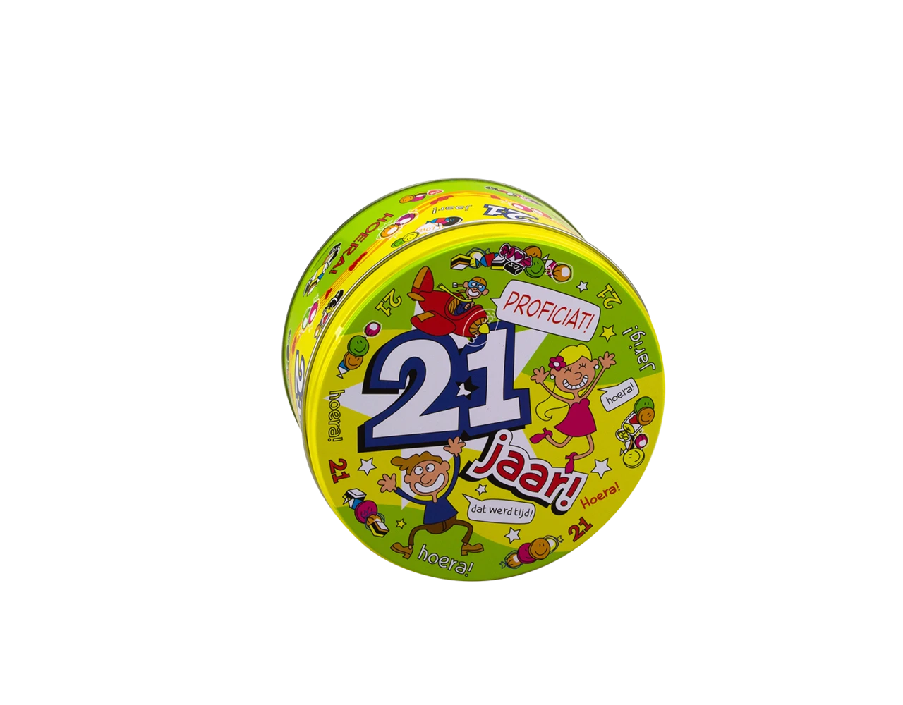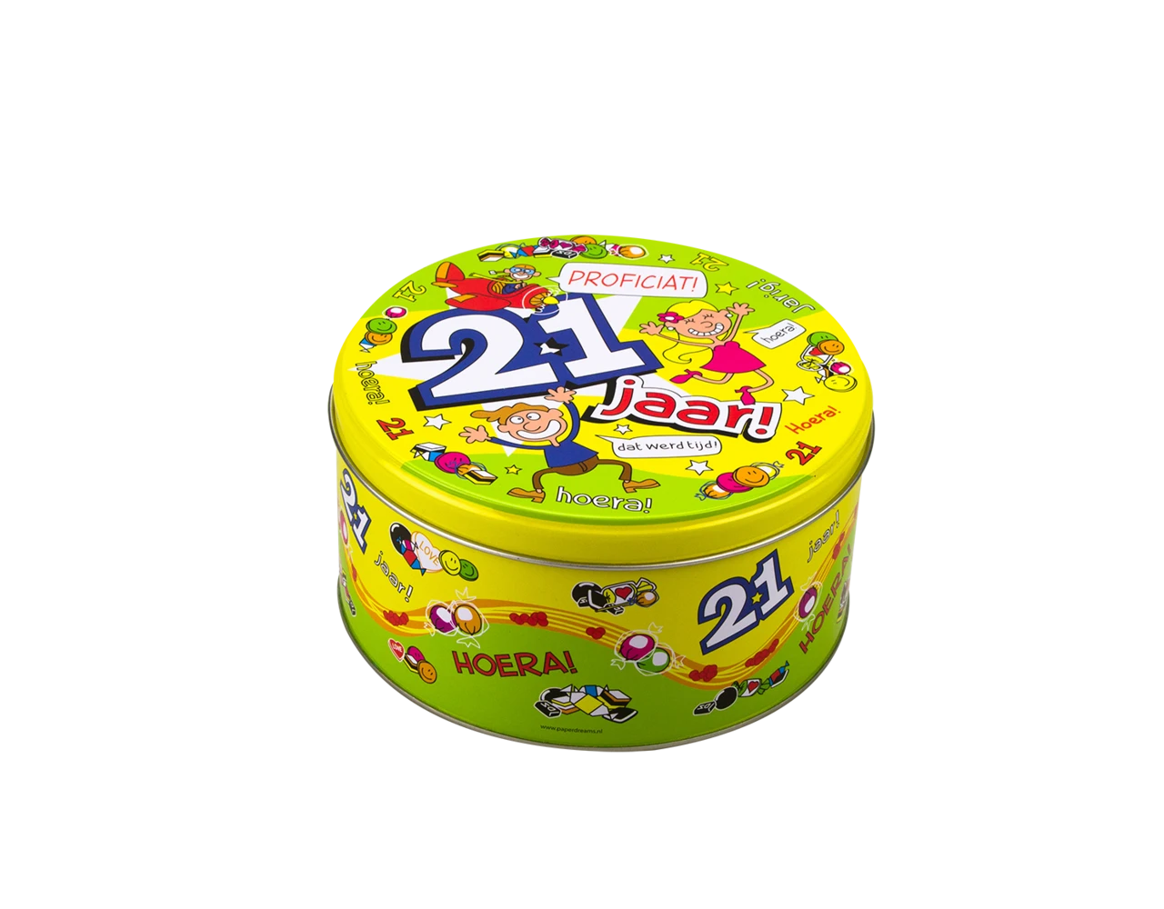 Verpakkingsinhoud: Snoeptrommel 21 Jaar 14cm
