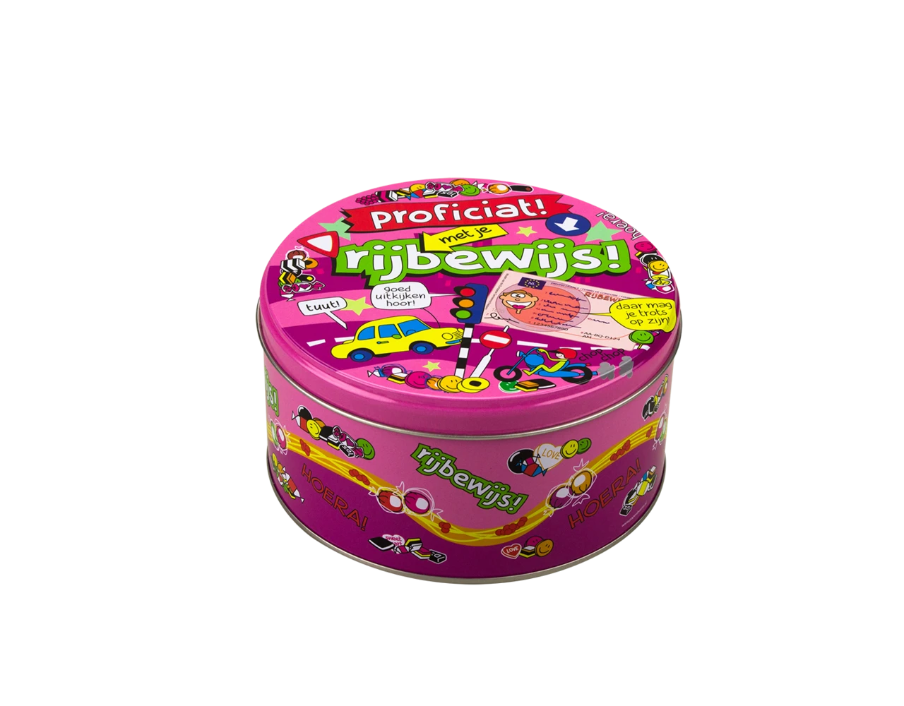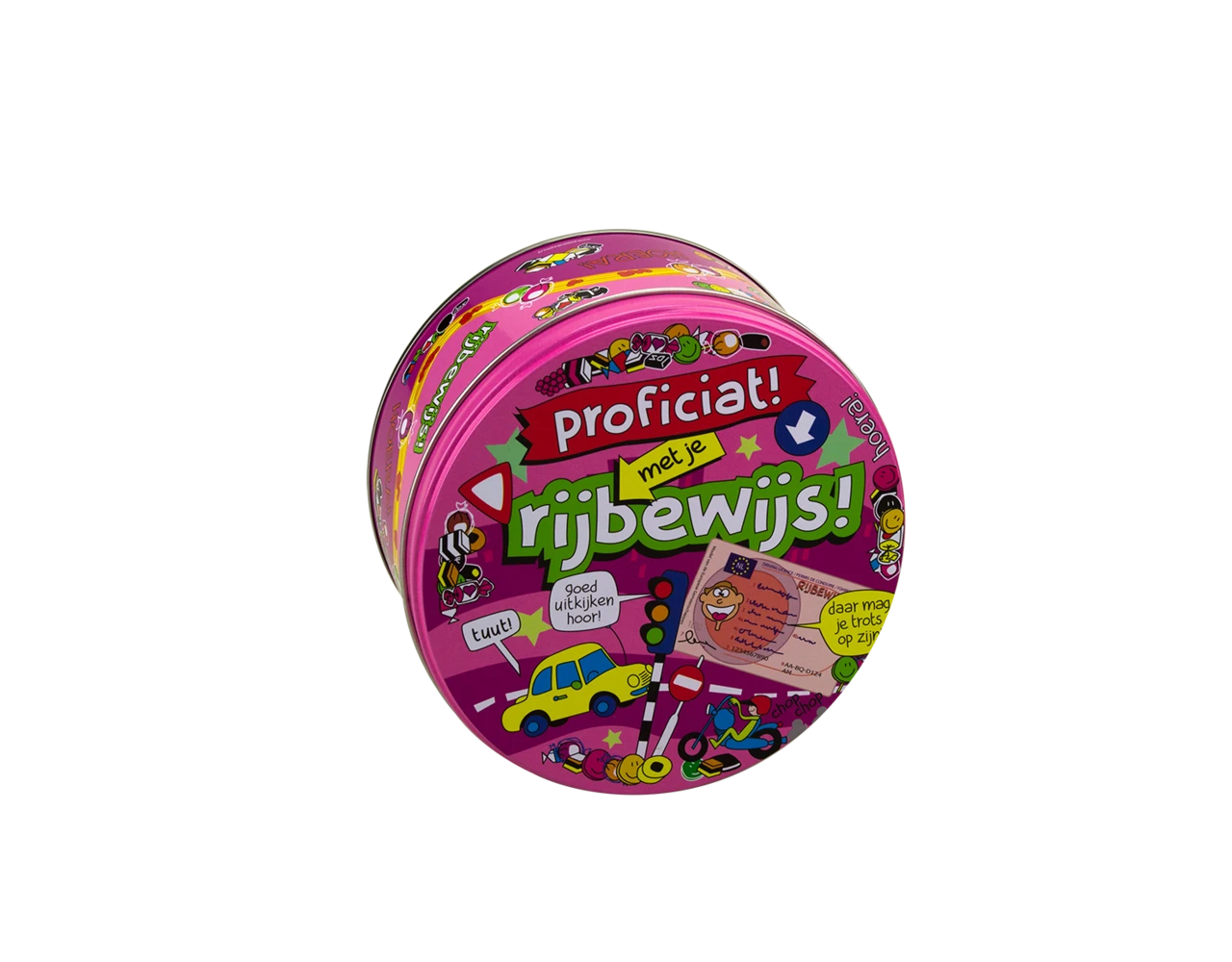Verpakkingsinhoud: Snoeptrommel Geslaagd Rijbewijs 14cm
