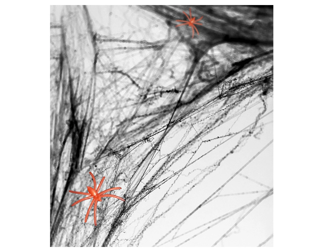Inhoud: 60 gram spinnenweb en 2 nep spinnen