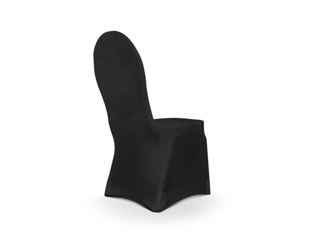 Stoelhoes, elastische matte stof, zwart, grammage 200g. Hij past op elke stoel met een afgeronde rugleuning.