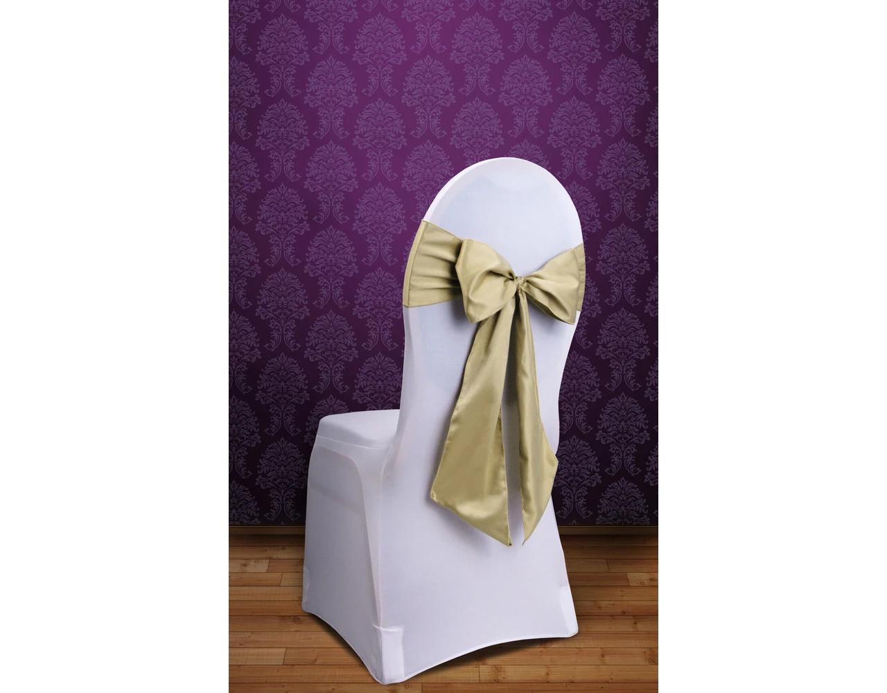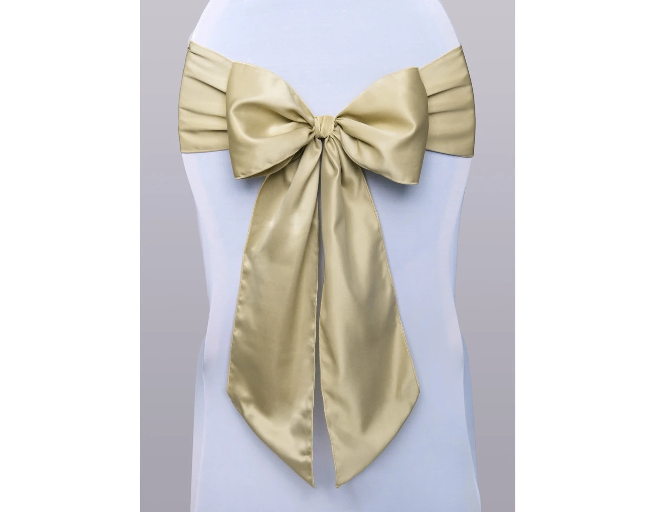 Inhoud: Stoel vleugels, dikke mat satijn, licht goud, lengte 2,75 m, breedte 15 cm. (1 PKT / 10 st.)