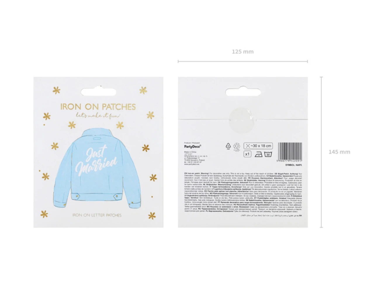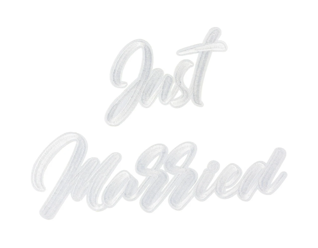 Strijklapje Just Married, in witte kleur, afmeting ca. 30 x 18cm.
