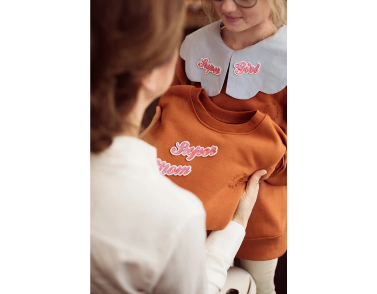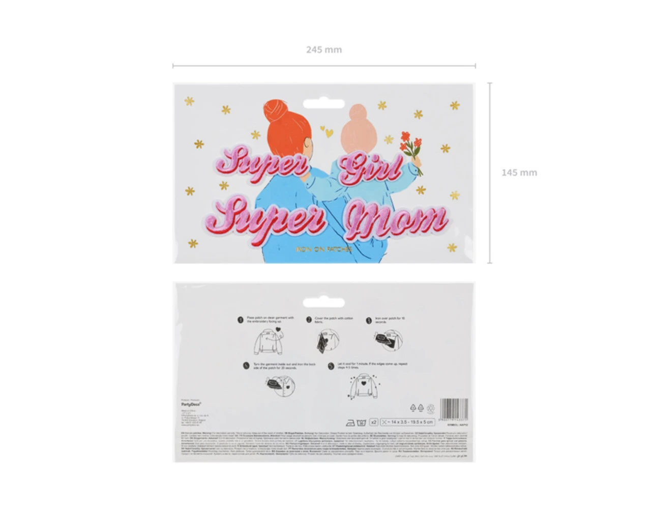 Strijklapjes Supermom, mix van kleuren, set bevat 2 dessins (1 stuk van elk dessin), formaat ca. 14 x 3,5 – 19,5 x 5 cm.
