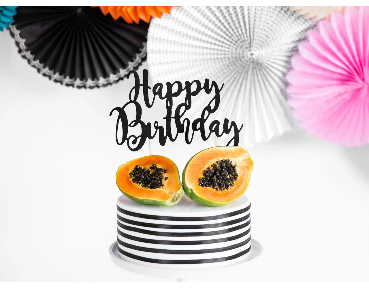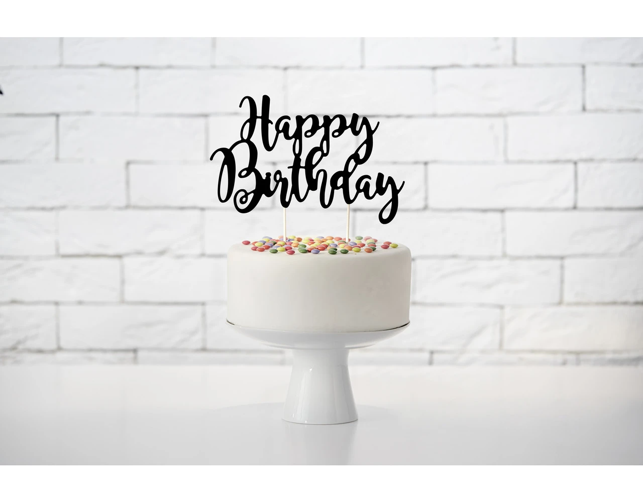 Inhoud: Cake topper Happy Birthday, zwart, lengte ong. 22,5 cm.
