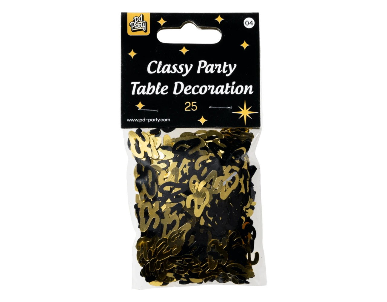 Met de Classy party table decoration is een tafel in een mum van tijd feestelijk aangekleed. Deze leuke goud zwarte feestversiering is te verkrijgen met diverse kroonleeftijden en is een leuke aanvulling op onze andere Classy party feestartikelen.