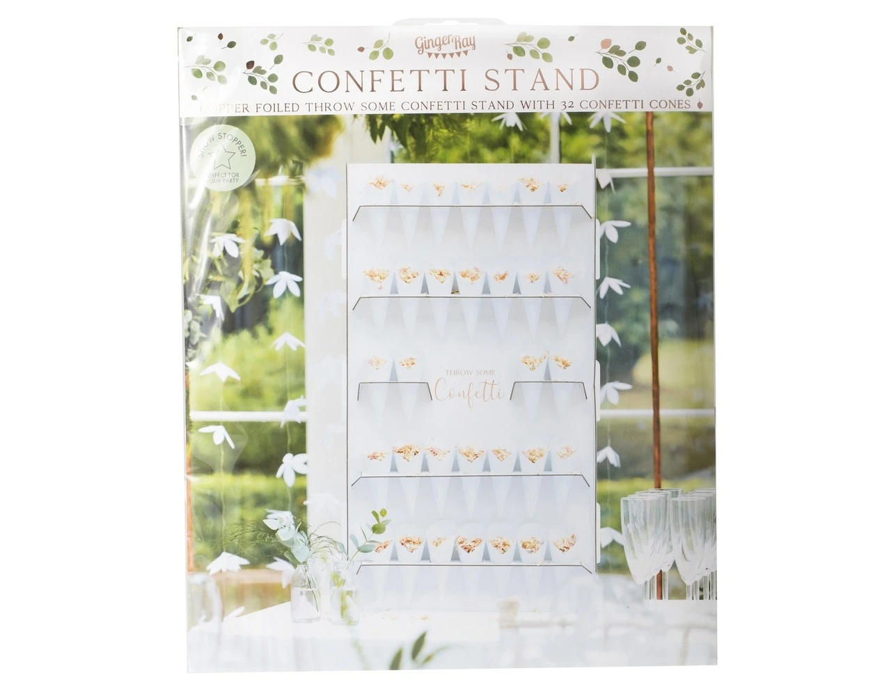 Zorg ervoor dat de gasten klaar zijn om het getrouwde stel te overladen met confetti met behulp van deze unieke confetti-kegelhouder.Â