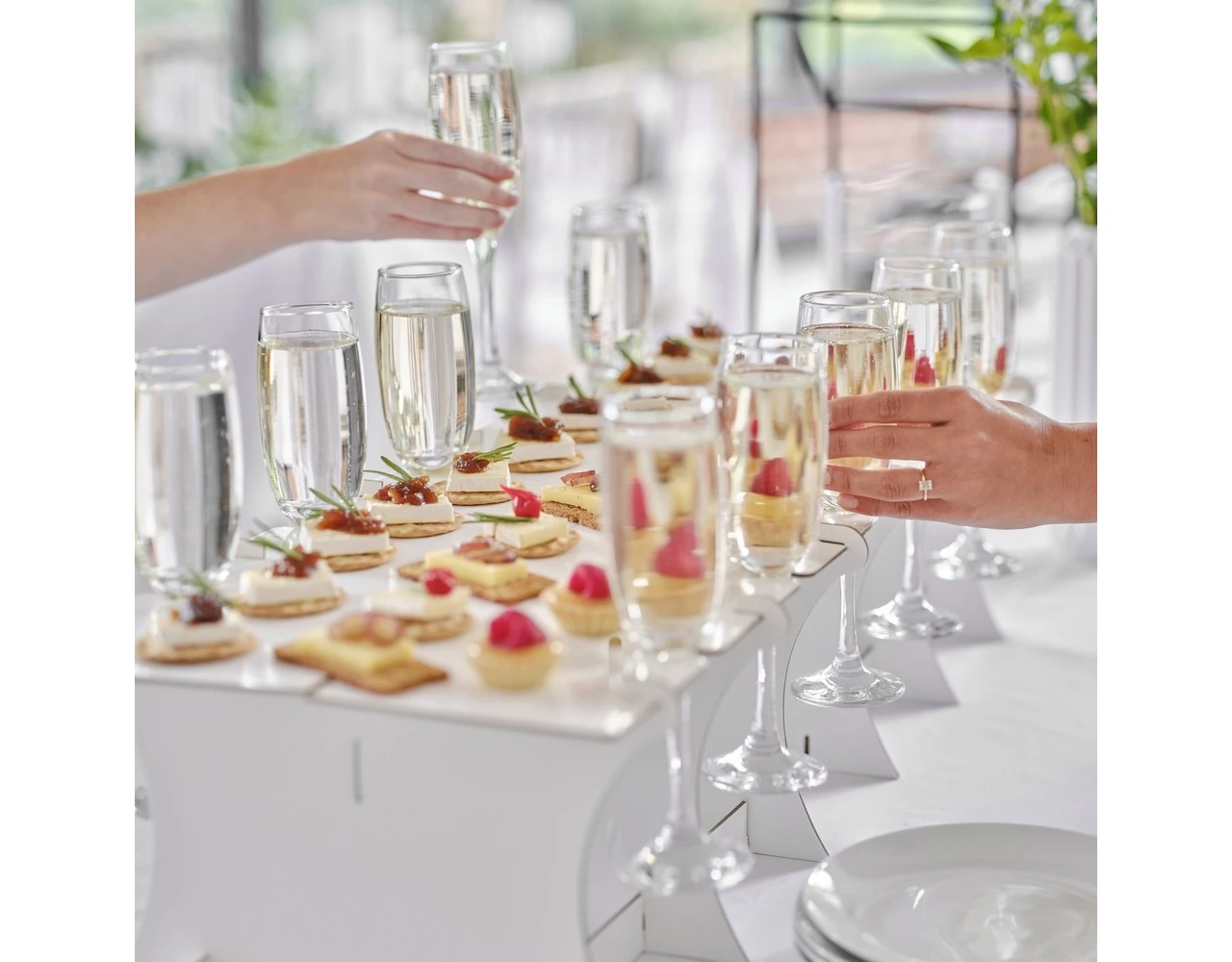 Laat je bruis en een scala aan heerlijke hapjes zien met deze indrukwekkende gecombineerde drinkstandaard en graasplank waar je gasten dol op zullen zijn!