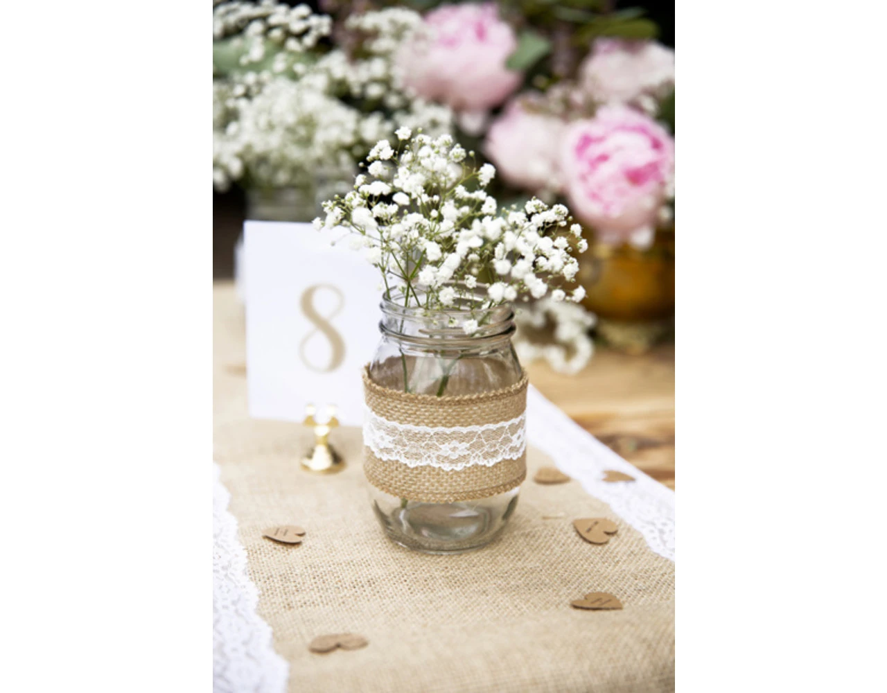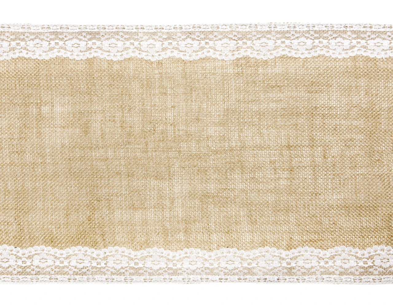 Jute tafelloper met kant, breedte ca. 28 cm, lengte ca. 2,75 m.