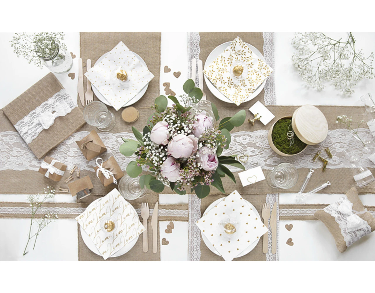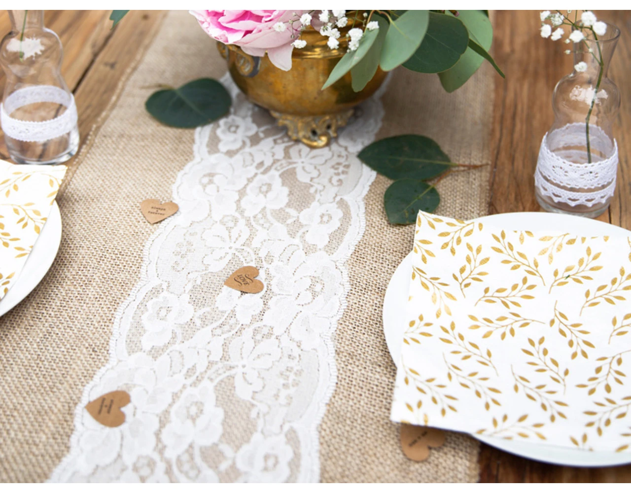 Jute tafelloper met kant, breedte ca. 28 cm, lengte ca. 2,75 m.