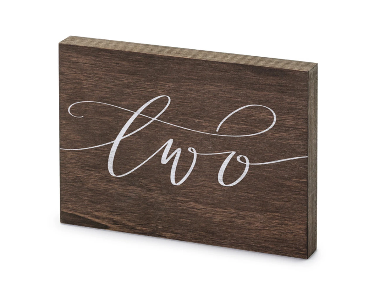 Houten tafelnummer met wit opschrift ”Two”, afm. ca. 2x18x12,5 cm