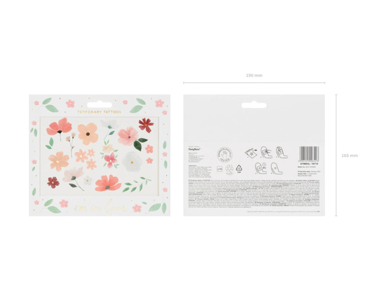 Tijdelijke tattoos I’m in love, mix van kleuren en motieven, set bevat 18 stuks tattoos (ŽŽn tattoo van elk motief).