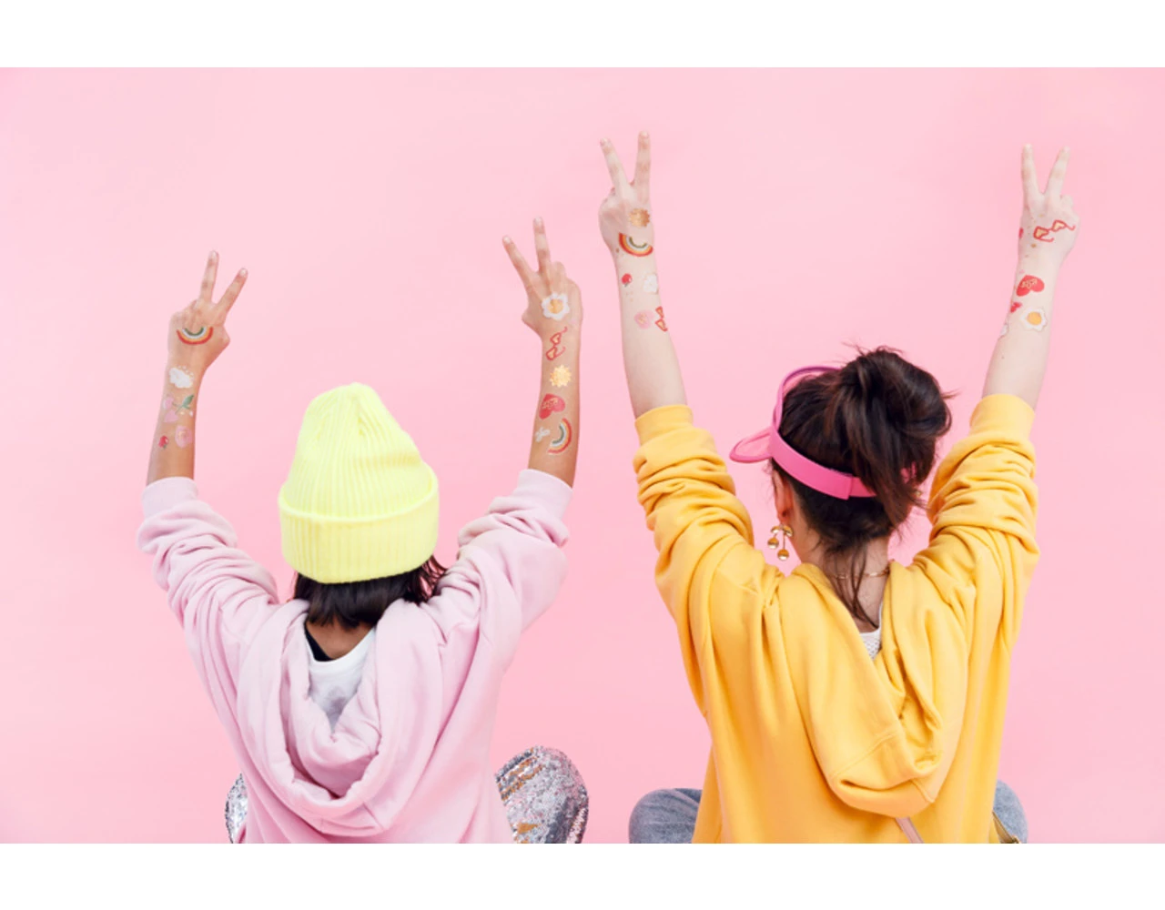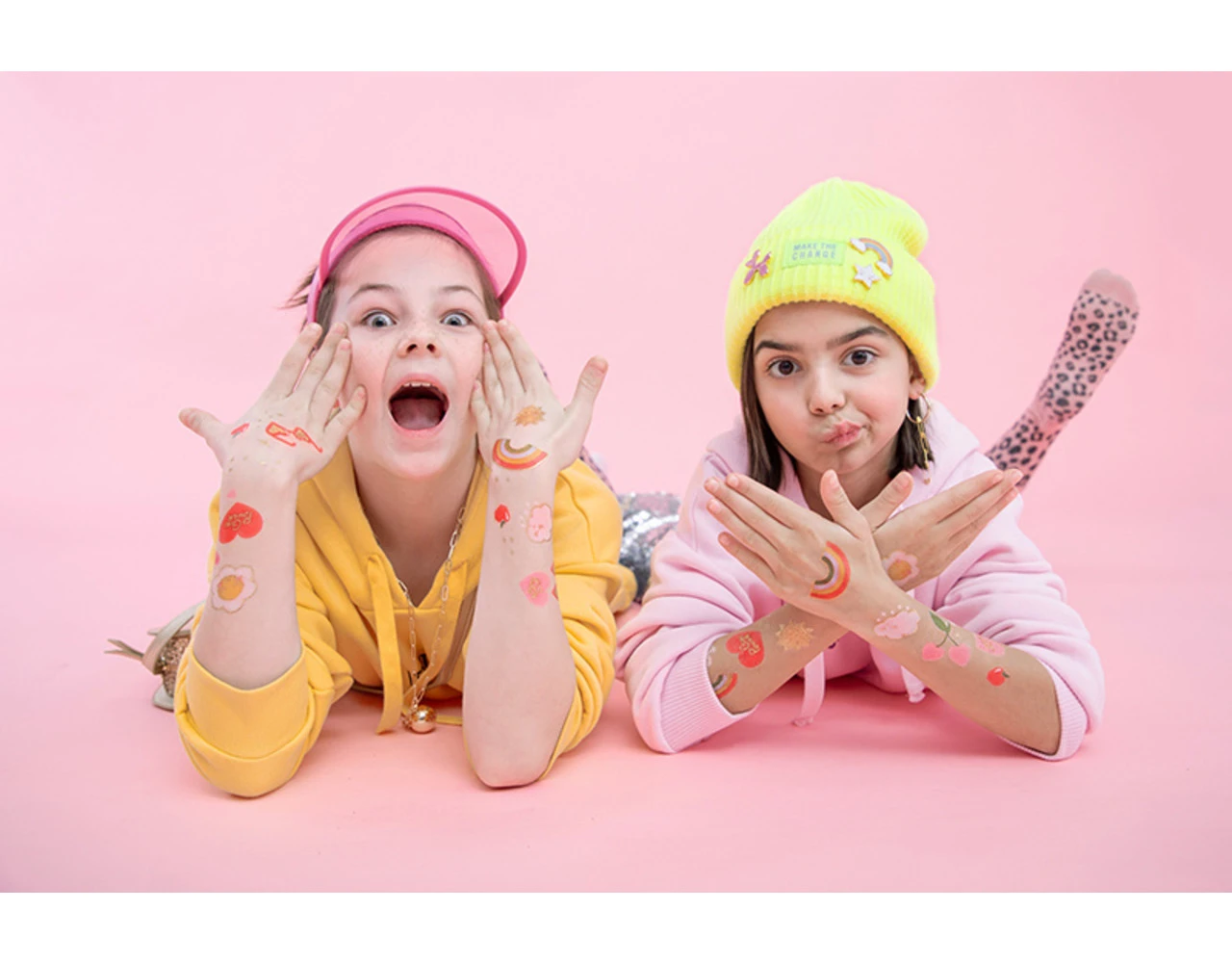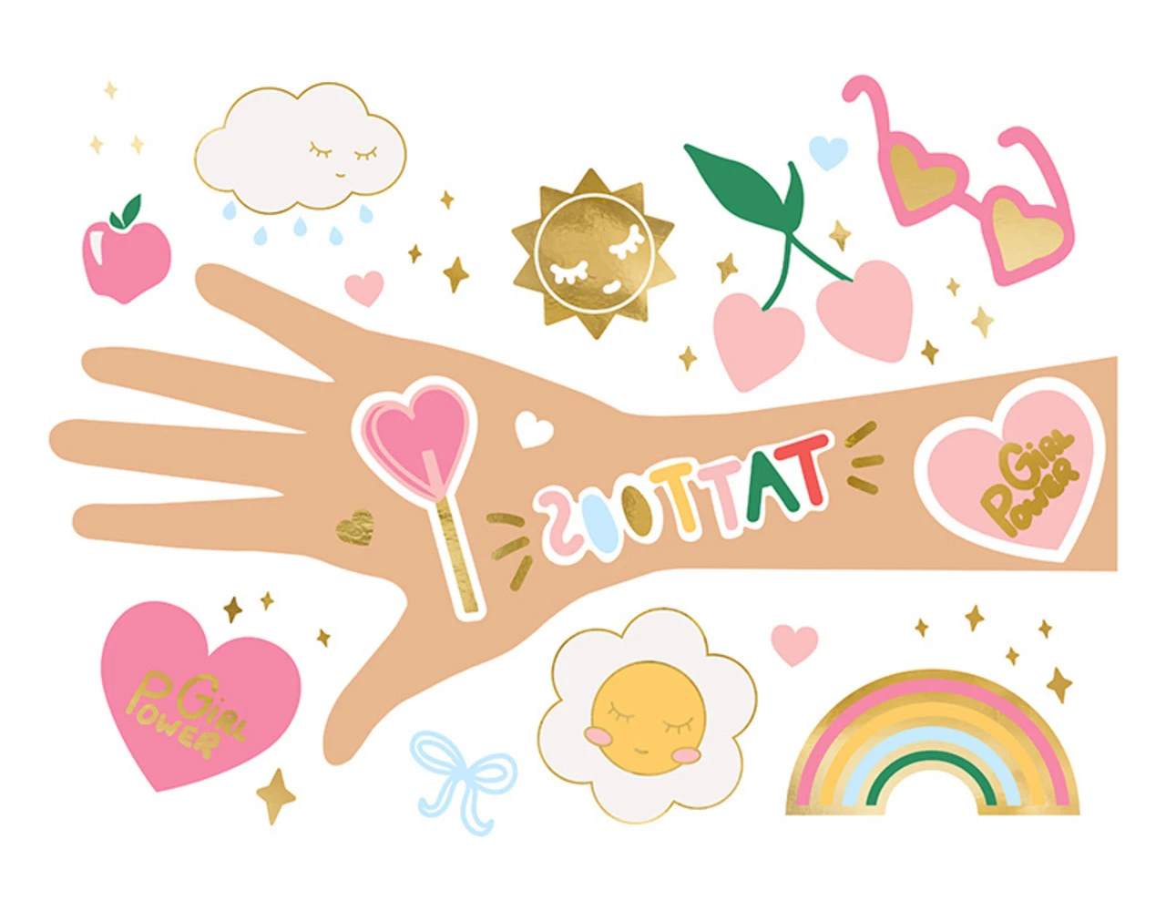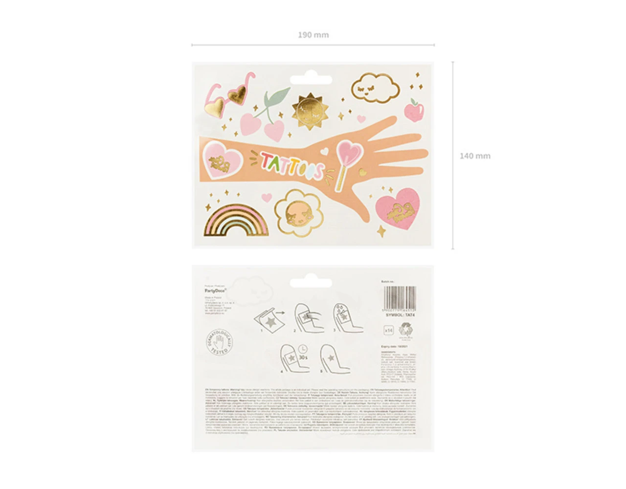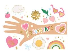 Tijdelijke tattoos Daisy, mix van kleuren en motieven, set bevat 14 stuks tattoos, ŽŽn tattoo van elk motief.