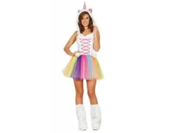 Inhoud: unicorn jurk met capuchon en staart en beenwarmers