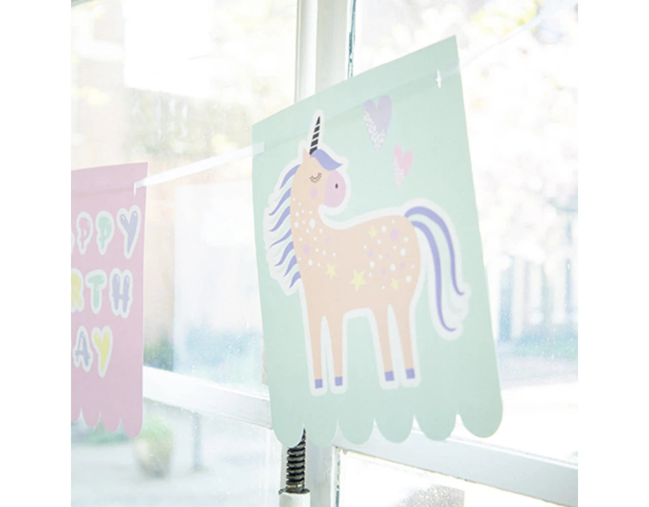 Vlaggenlijn Unicorns & Rainbows – 6 meter. Inhoud: 1 vlaggenlijn. Kleur: Meerkleurig. Bijvoorbeeld te gebruiken tijdens de volgende feestgelegenheid/feestgelegenheden: Kinderfeestje. Deze slinger is 6 meter lang met 12 vlaggetjes van 18×21 cm. Het artikel is gemaakt van papier en is dubbelzijdig bedrukt.