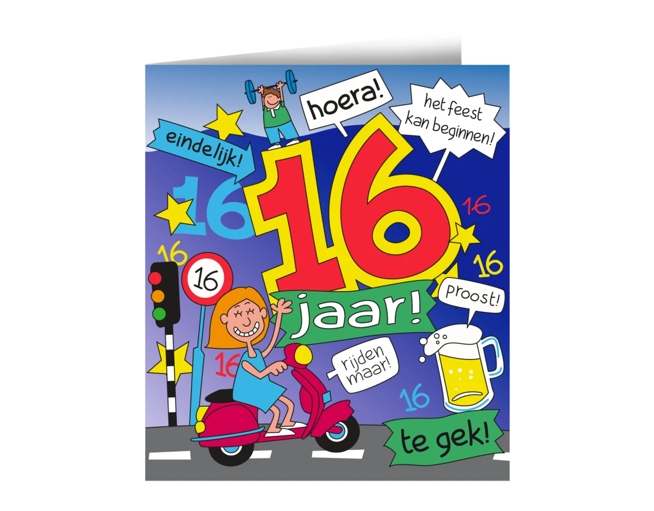 Verpakkingsinhoud: Verjaardagskaart 16 Jaar Cartoon 16,5cm
