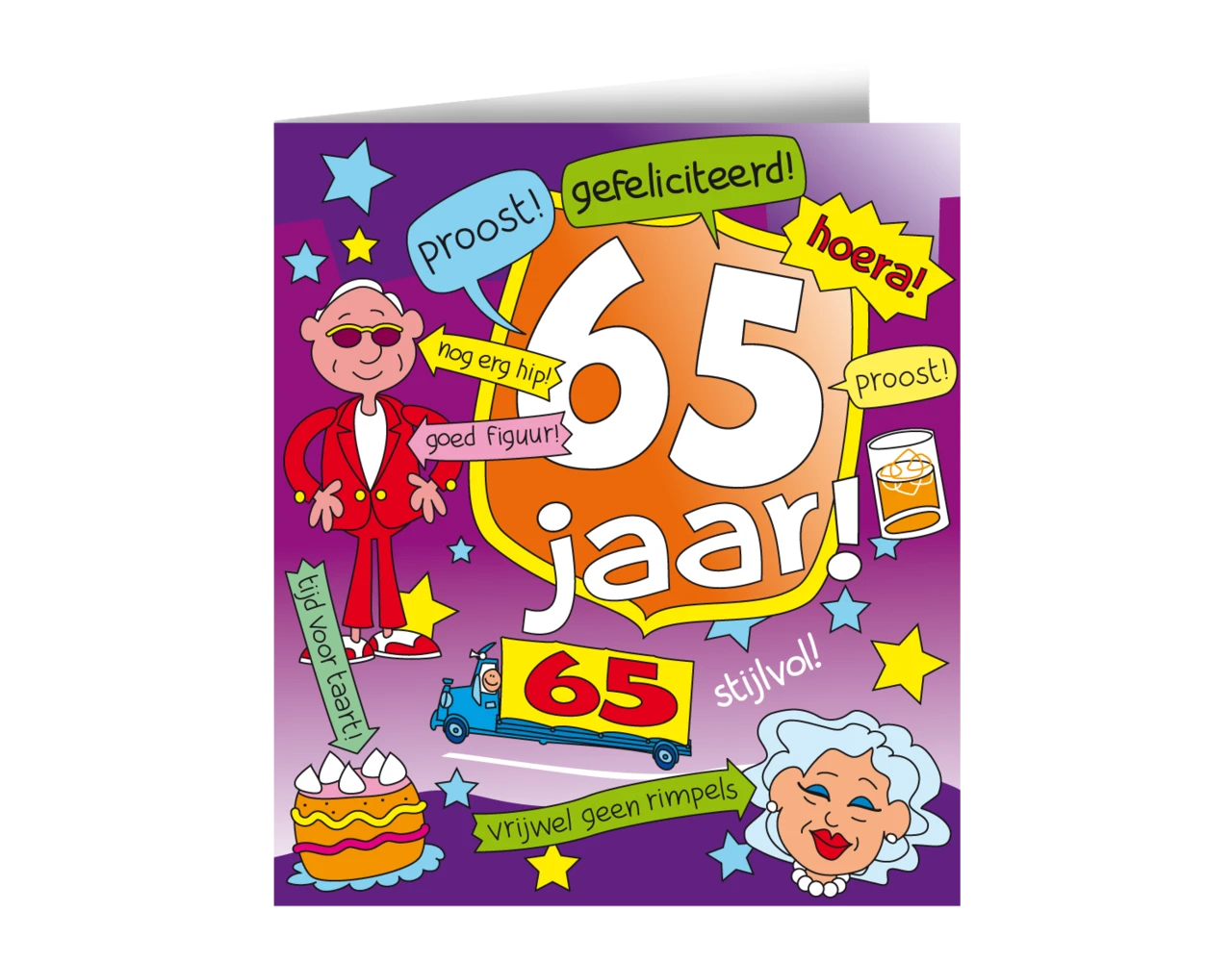 Verpakkingsinhoud: Verjaardagskaart 65 Jaar Cartoon 16,5cm