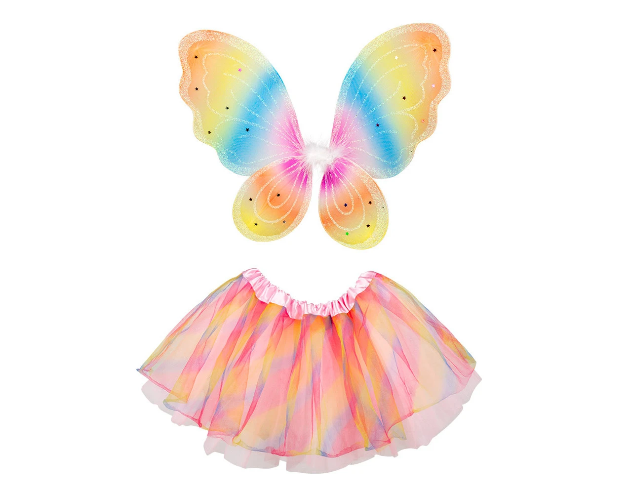 Verpakkingsinhoud: Set Regenboogfee vleugels en tutu