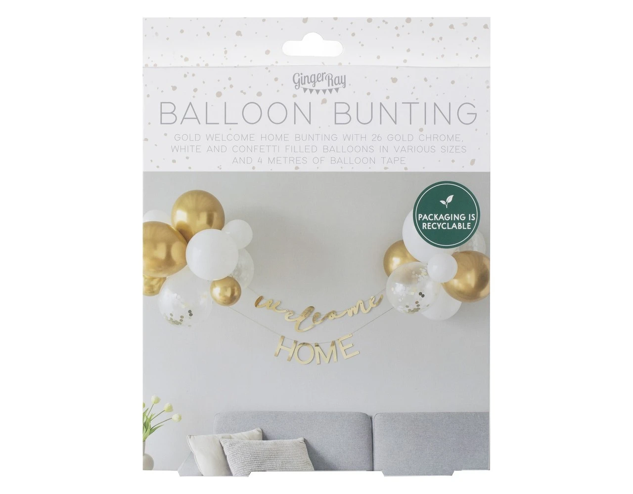 Inclusief 4 m papieren ballontape, 30 x lijmstippen en 3 m wit touw.
