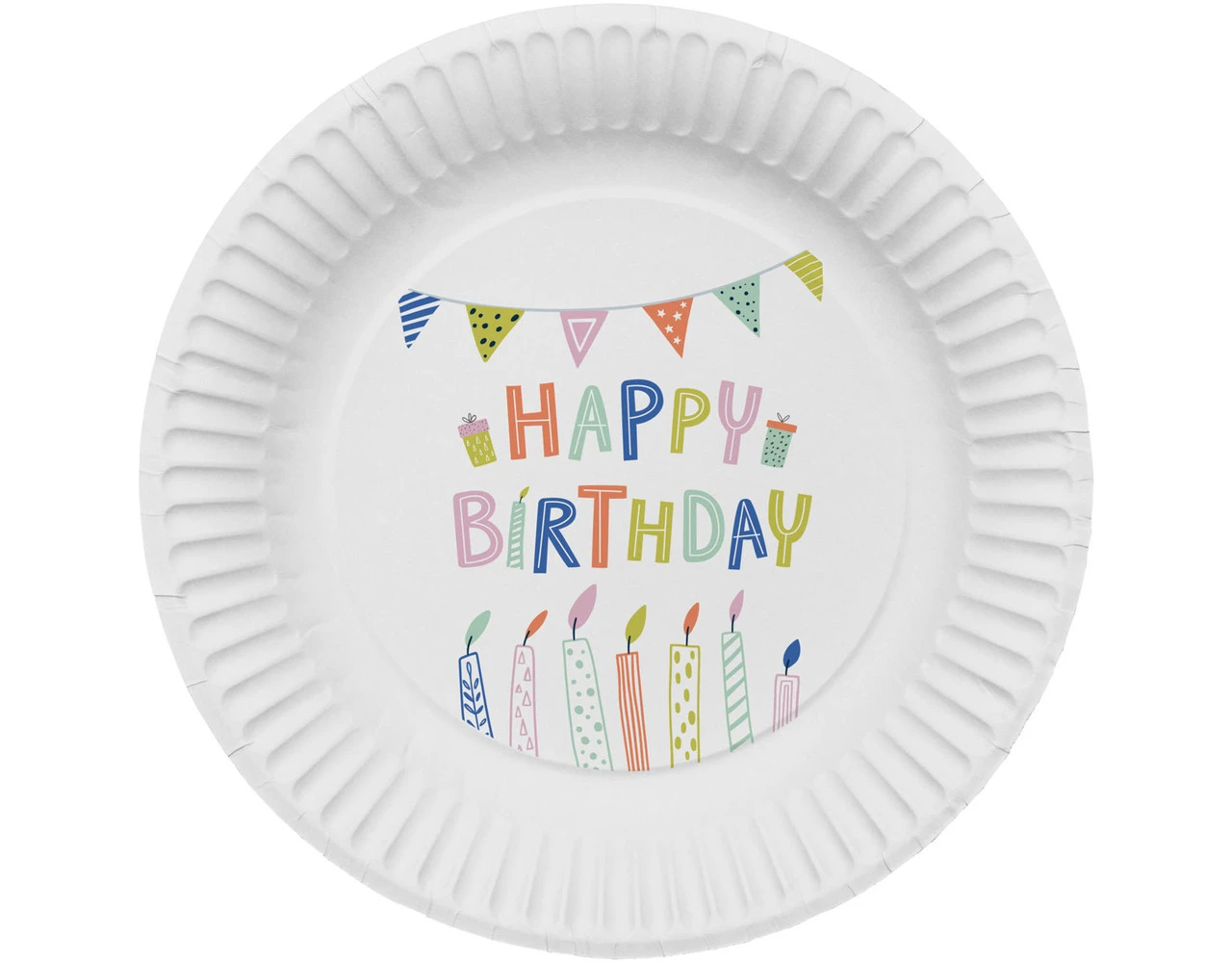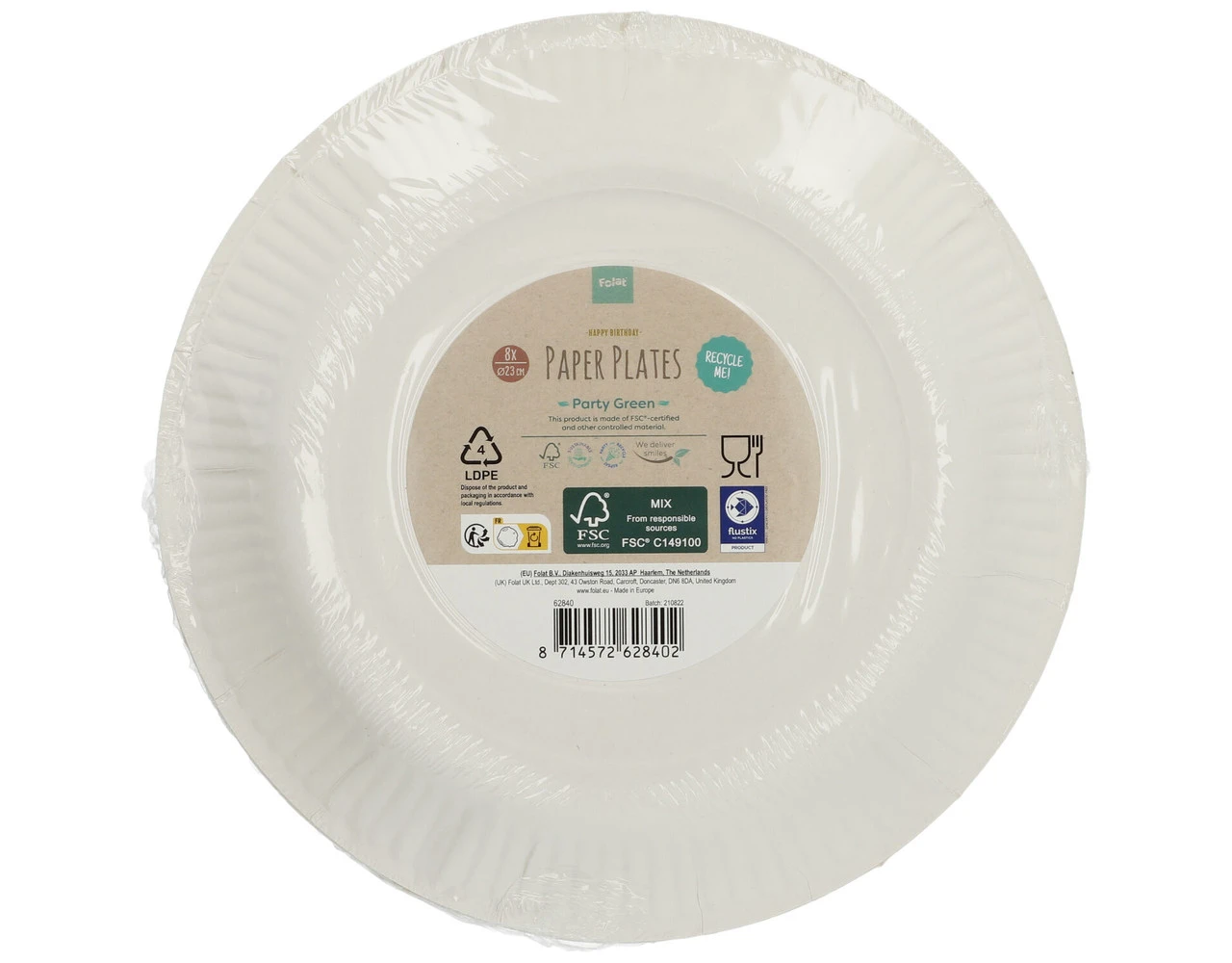 Borden Eco Party 23cm – 8 stuks. Inhoud: 8 borden. Kleur: Meerkleurig. Bijvoorbeeld te gebruiken tijdens de volgende feestgelegenheid/feestgelegenheden: Verjaardag en Kinderfeestje. Een bord heeft een diameter van 23 cm. Het artikel is gemaakt van FSC®-gecertificeerd papier.