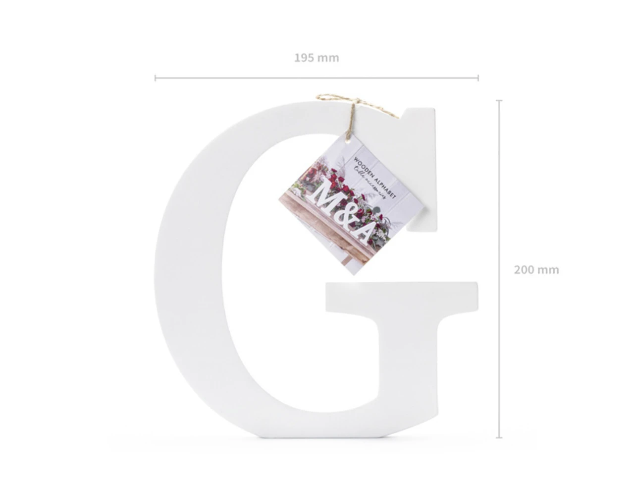 Letter G van hout in witte kleur, breedte ca. 19,5 cm, hoogte ca. 20 cm