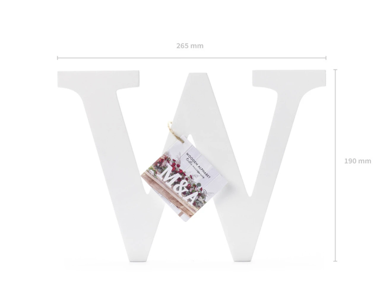 Letter W van hout in witte kleur, breedte ca. 26,5 cm, hoogte ca. 19 cm