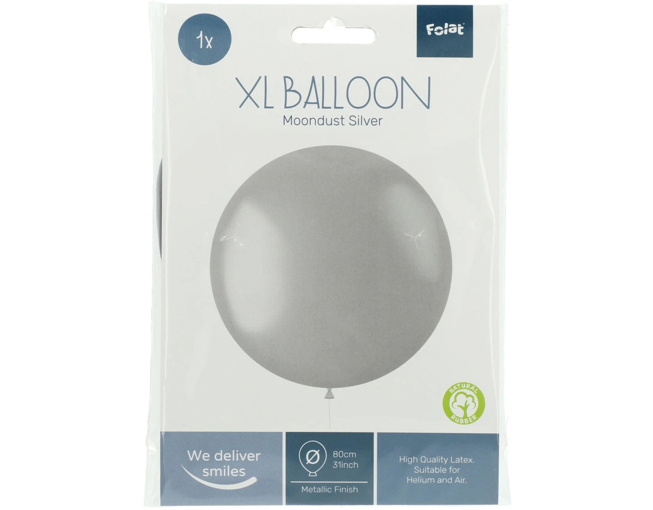 Ballon XL Moondust Silver Metallic – 78 cm. Inhoud: 1 latex ballon. Kleur: Zilverkleurig. Kleureffect: Metallic. Bijvoorbeeld te gebruiken tijdens de volgende feestgelegenheid/feestgelegenheden: Verjaardag, Kinderfeestje en Themafeest. De ballon is 31 inch/78 cm. Het artikel is gemaakt van latex.