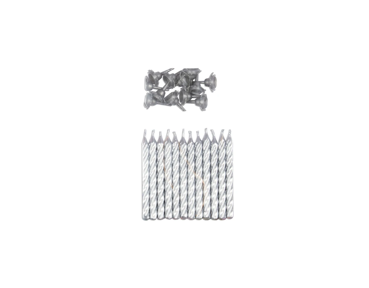Verpakkingsinhoud: Zilveren Kaarsjes 6cm 12st