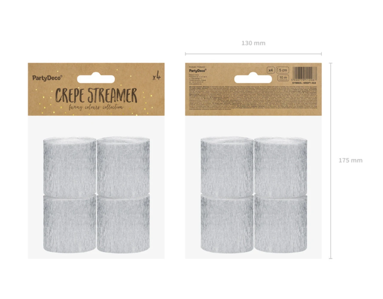 Verpakkingsinhoud: Zilveren Slingers Crepe Rol 5cm 10m 4st